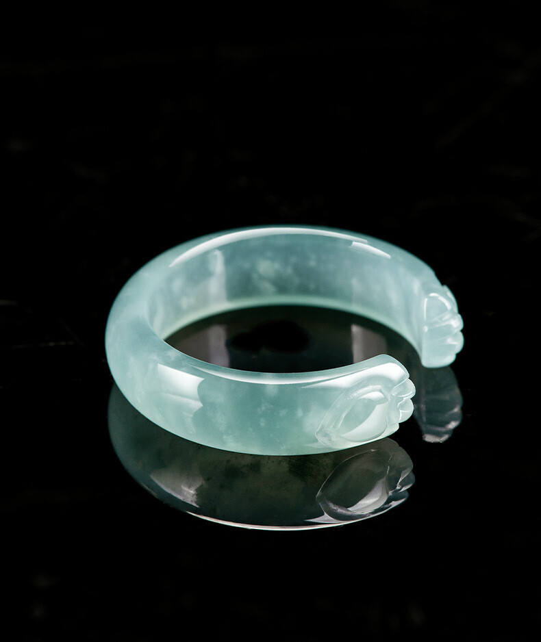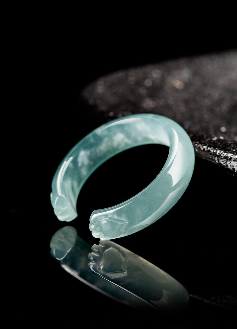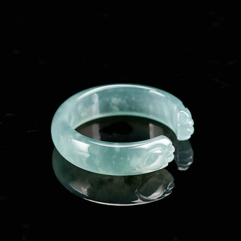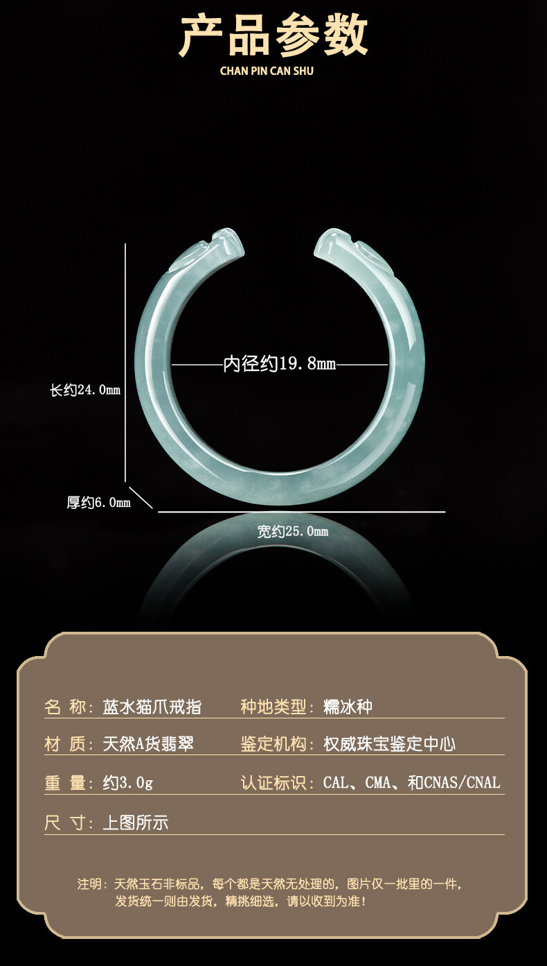 Certified A Jadeite Ring Women Men A Grade Blue Water Cat's Claws Band Open Ring