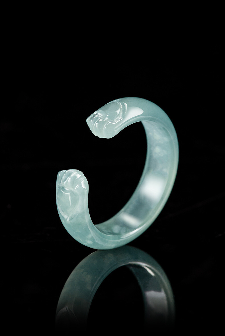 как выглядит Certified A Jadeite Ring Women Men A Grade Blue Water Cats Claws Band Open Ring фото