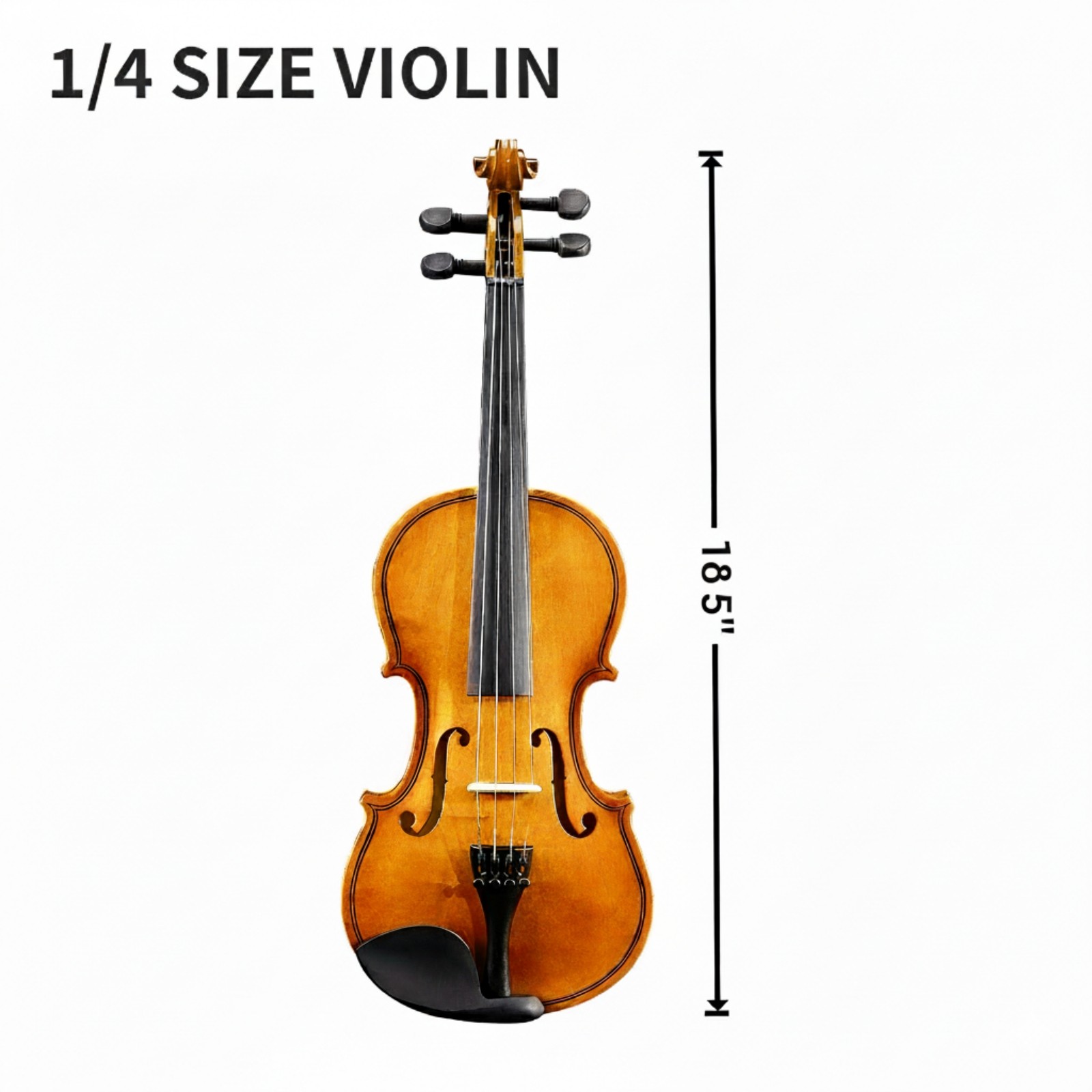 1/4 Size Kids Acoustic Beginner Violin Set - Shoulder Rest, Strings Natural