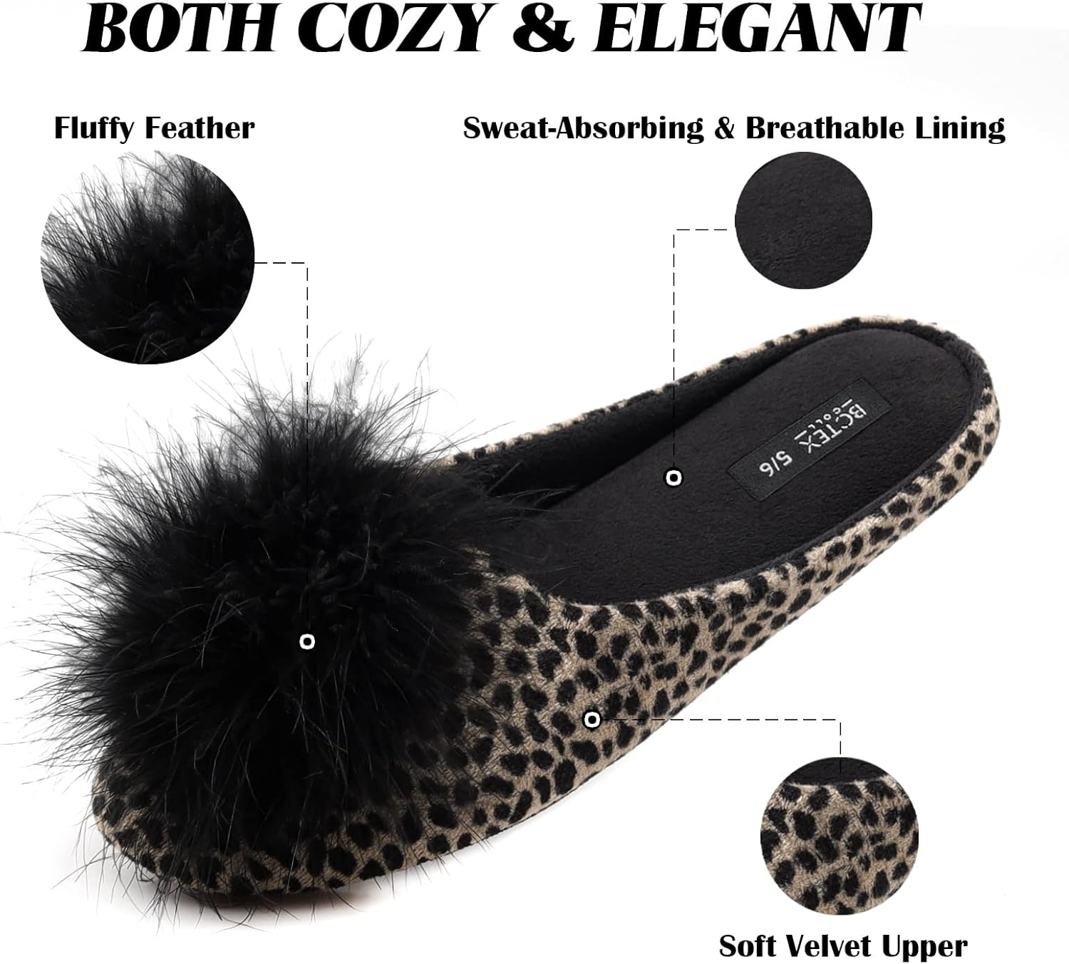 Women's Cozy Velvet Memory Foam House Slipper Ladies Fuzzy Slipper Non-Slip Sole