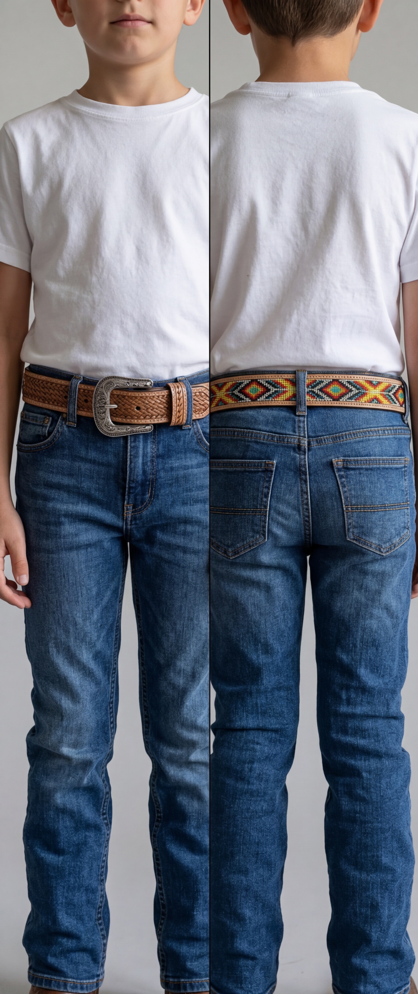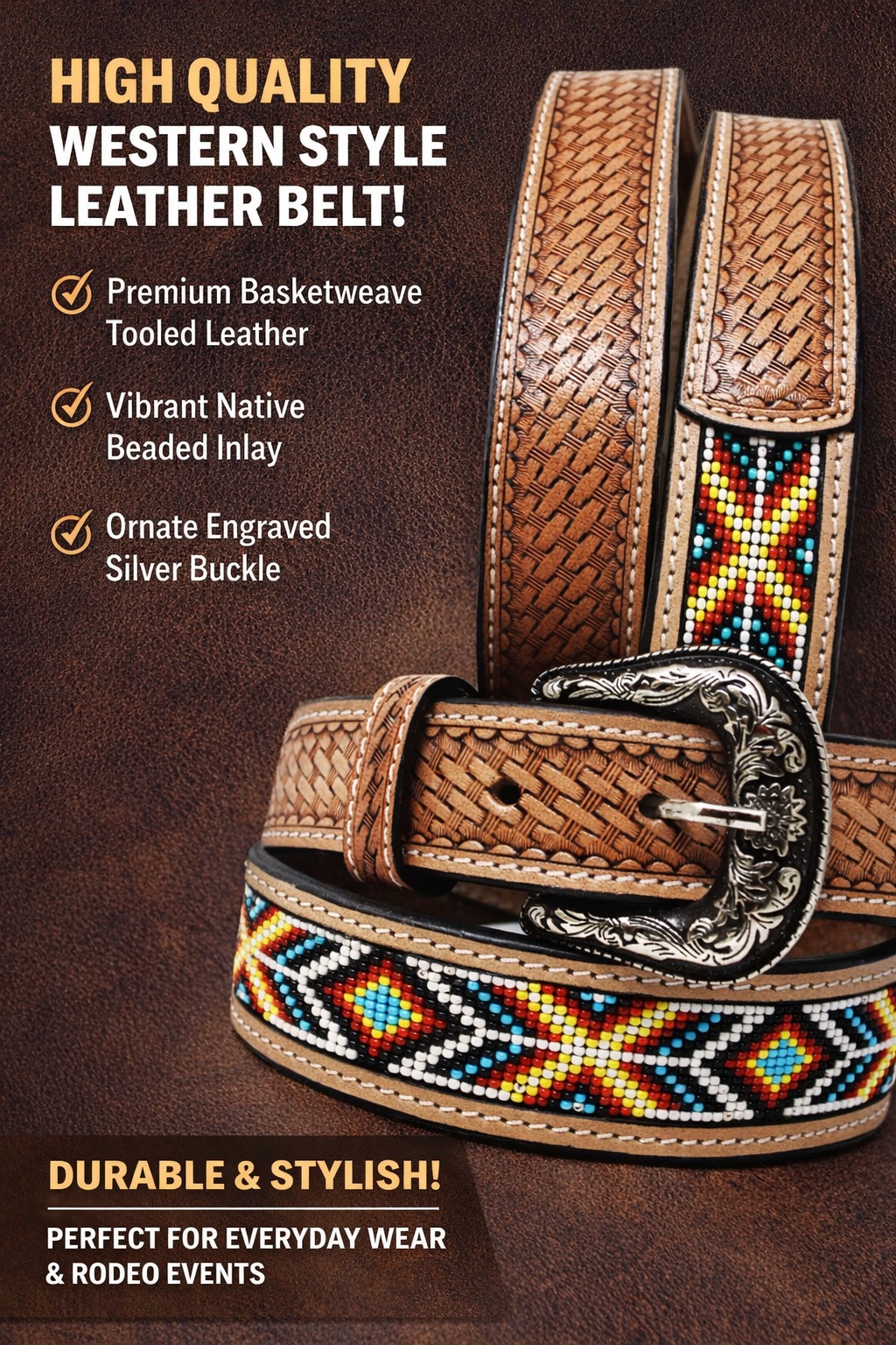 как выглядит Kids Child Youth 1-1/4" Wide Western Floral Tooled Purple Beaded Leather Belt фото