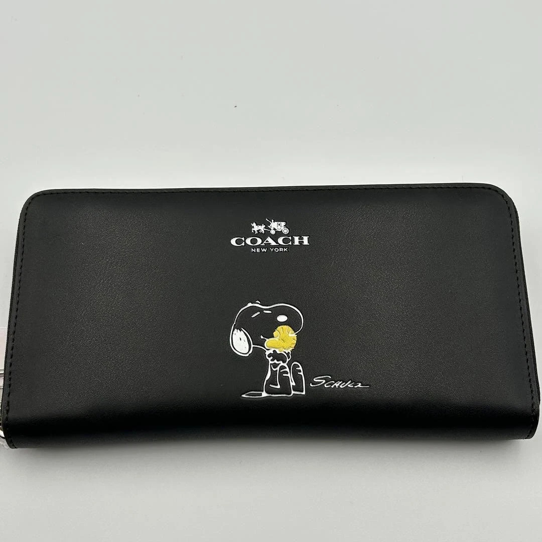 COACH x PEANUTS Long Wallet Snoopy Woodstock Leather Zip Black New F/S A