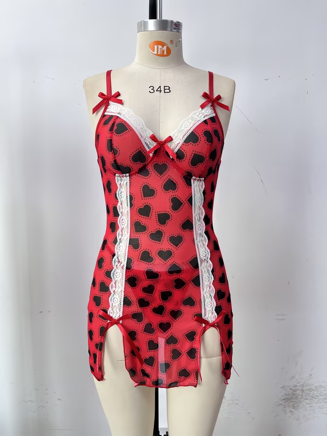 Women's Christmas Lingerie Nightgown Xmas Chemise Babydoll Side Slit Sleepdress