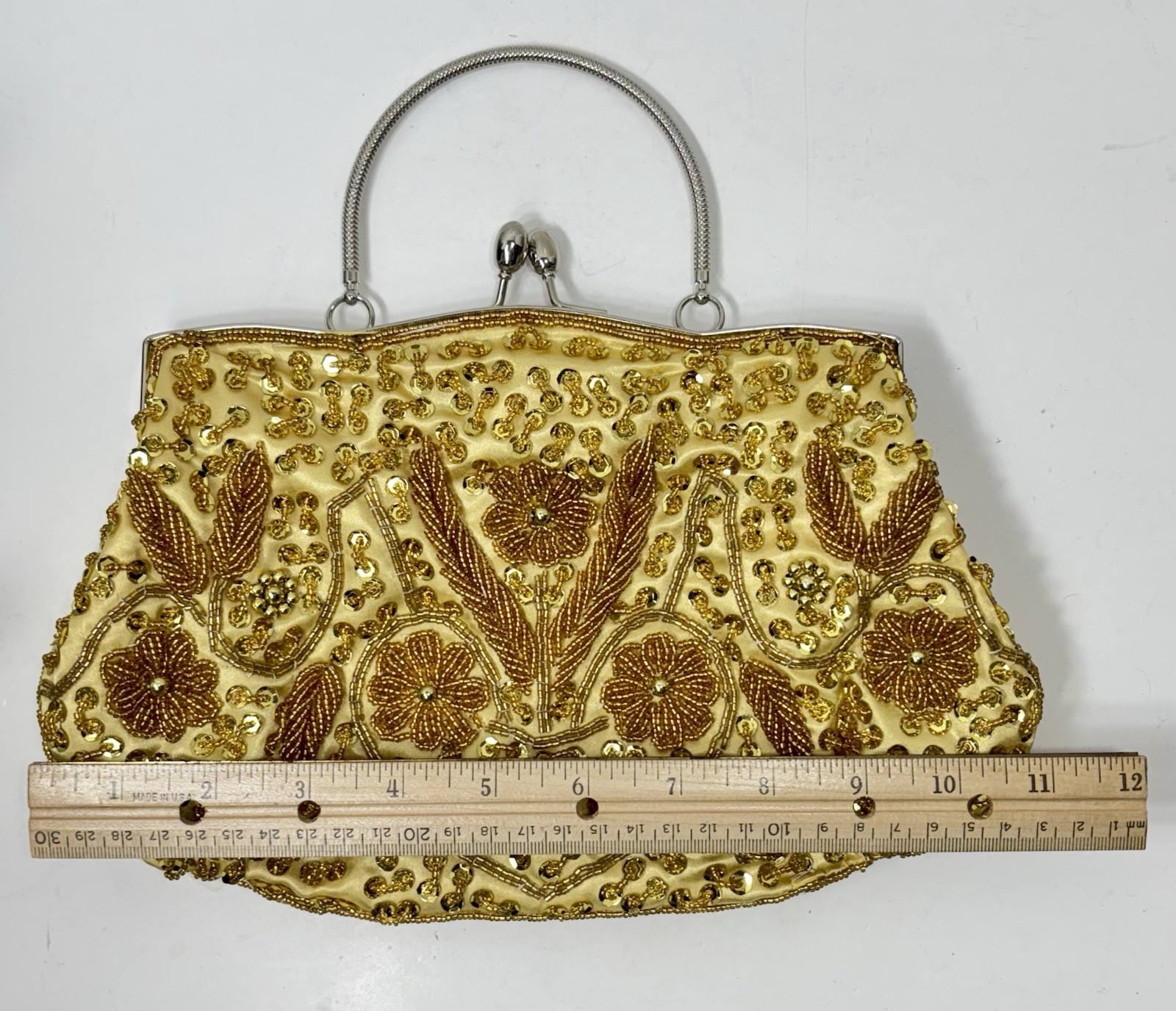 Ladies Golden Beaded Evening Bag Clutch Purse Wedding Party Handbags Silver Tone