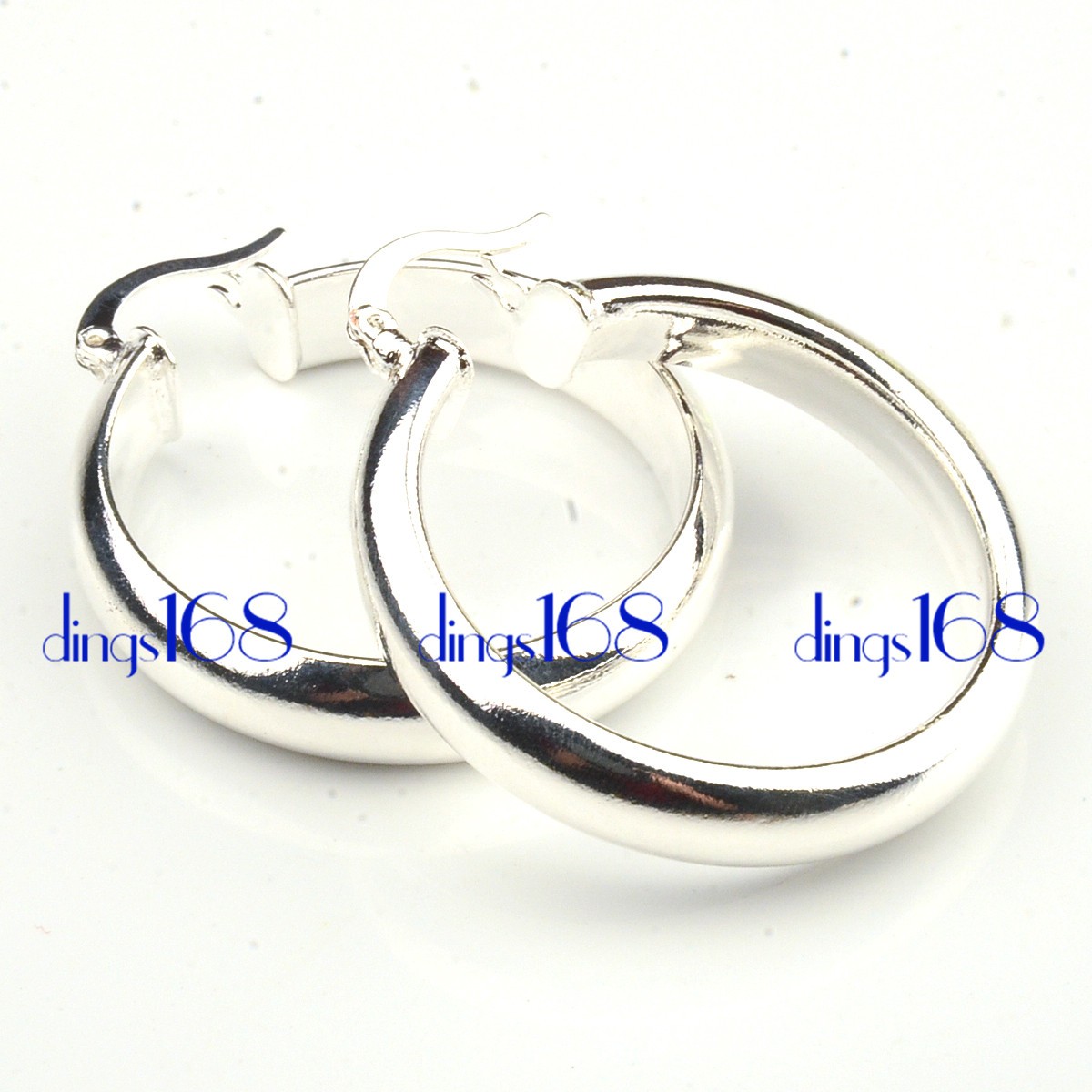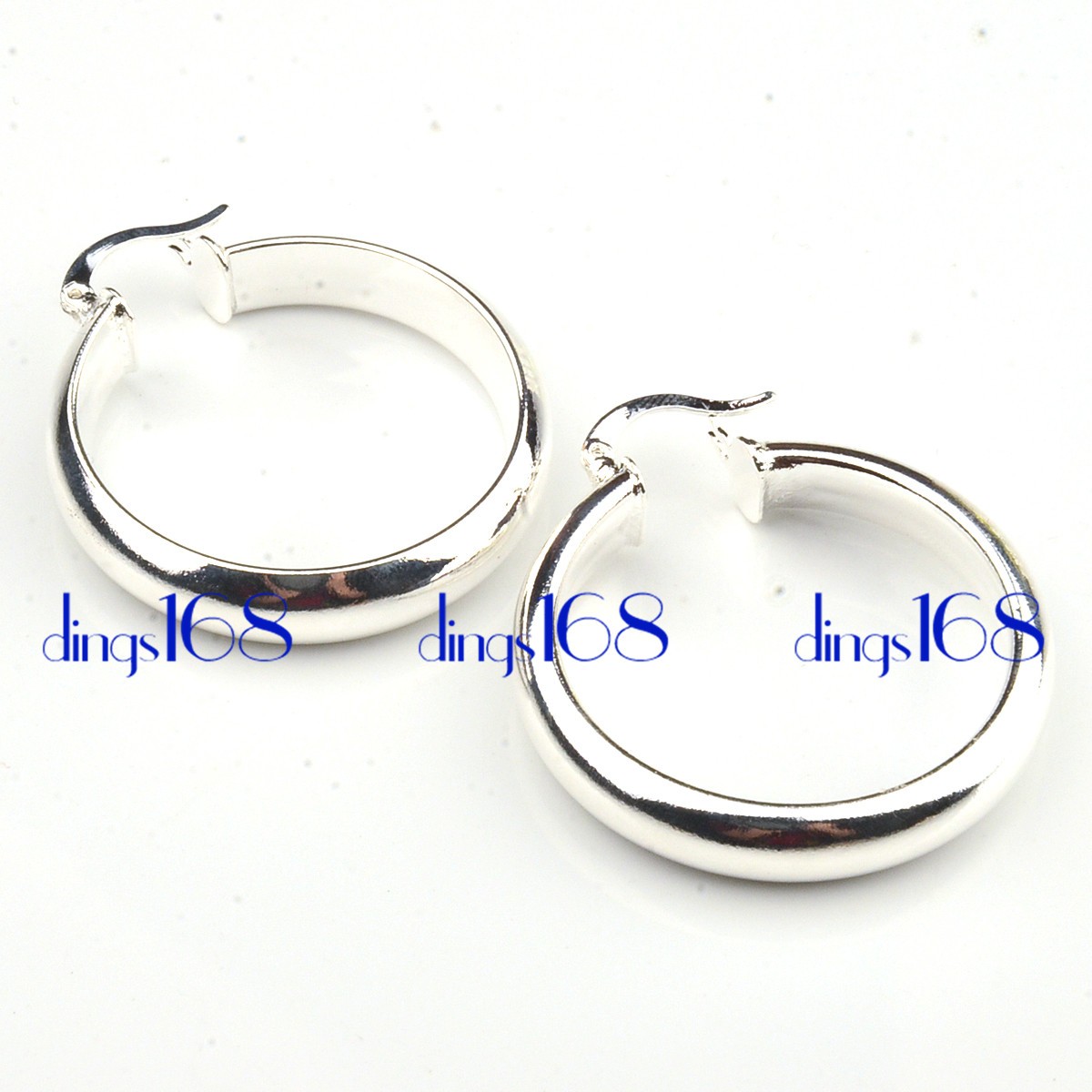 как выглядит 925 Sterling Silver Shiny 30mm Medium-Size 5mm Wide Flat Round Hoop Earrings HG2 фото