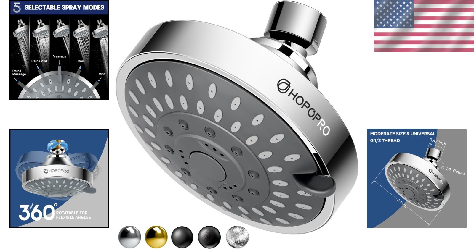 Polished Chrome Shower Head with 5 Settings - Recommended by Top Media Outlets