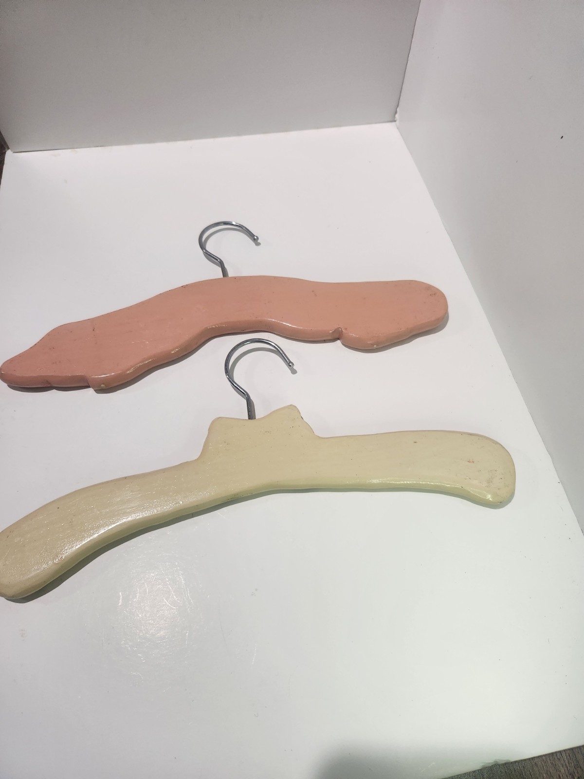 как выглядит Childs Hand Painted Wooden Hangers Cat With Bow Tie And Pig With Stars Swirls фото