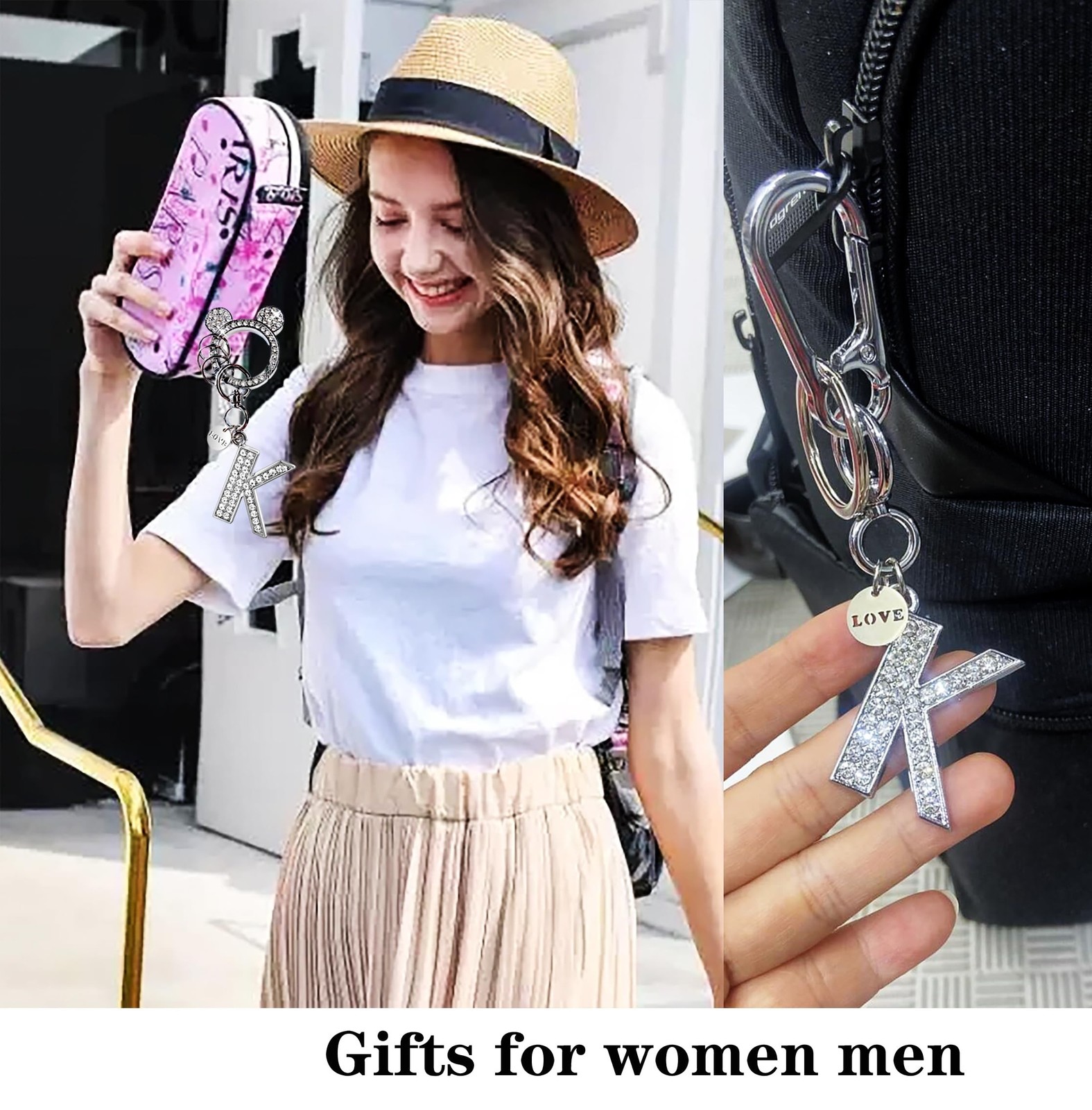 Cute Initial Letter Keychains for Women Men Bling Sparkly Bag Charms Silver L...