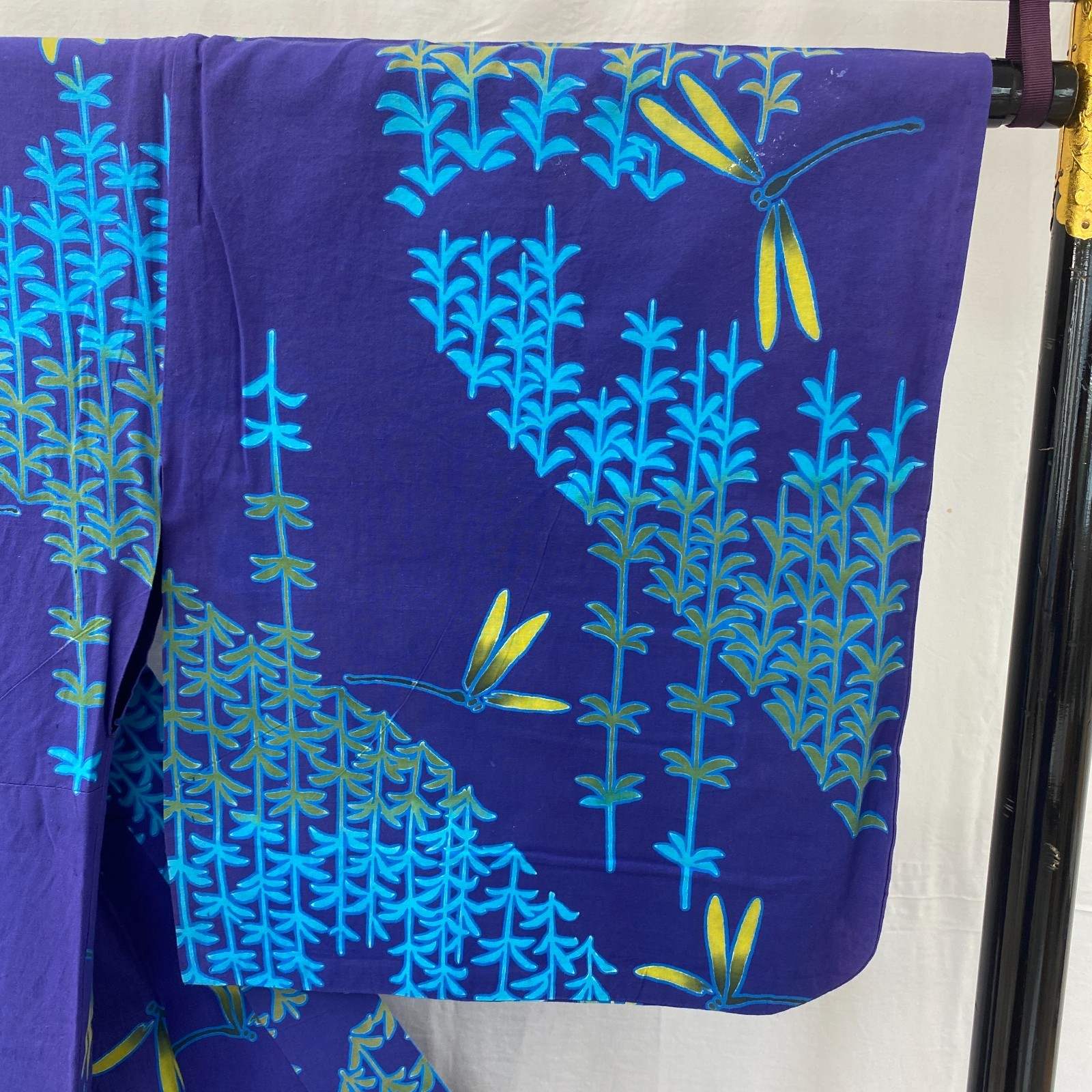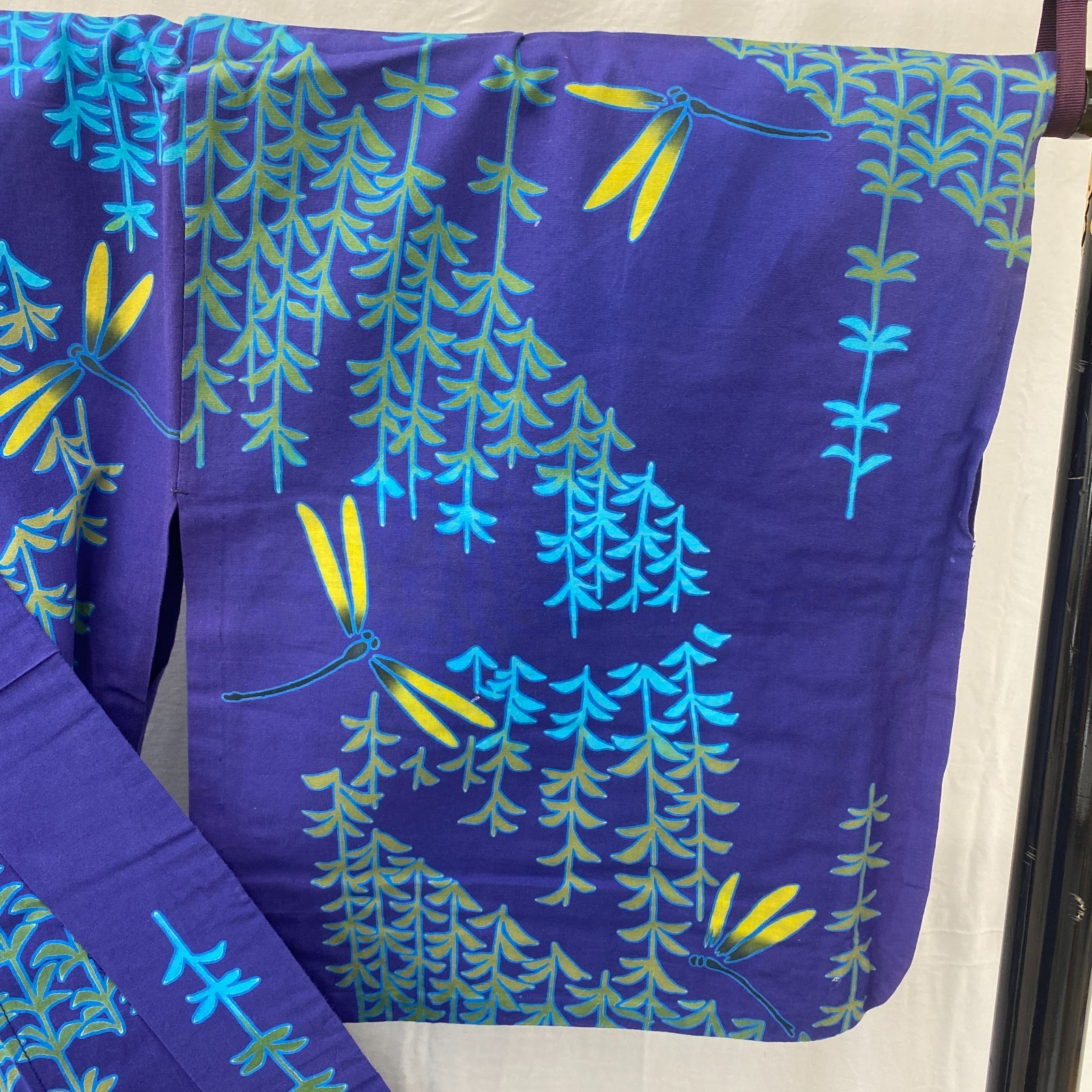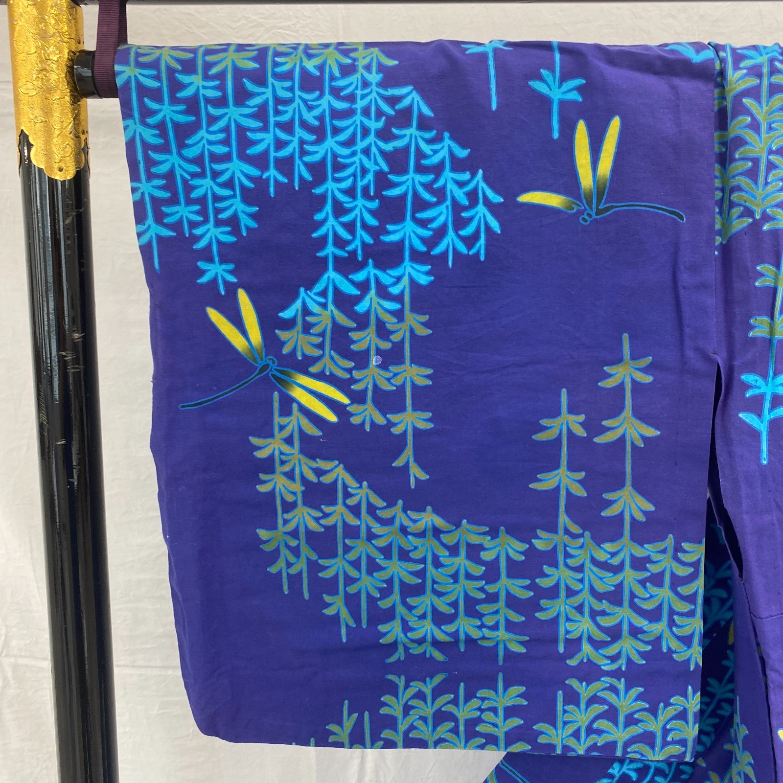 Japanese Vintage Kimono Yukata Cotton Blue No Lining Traditional Length 61 in