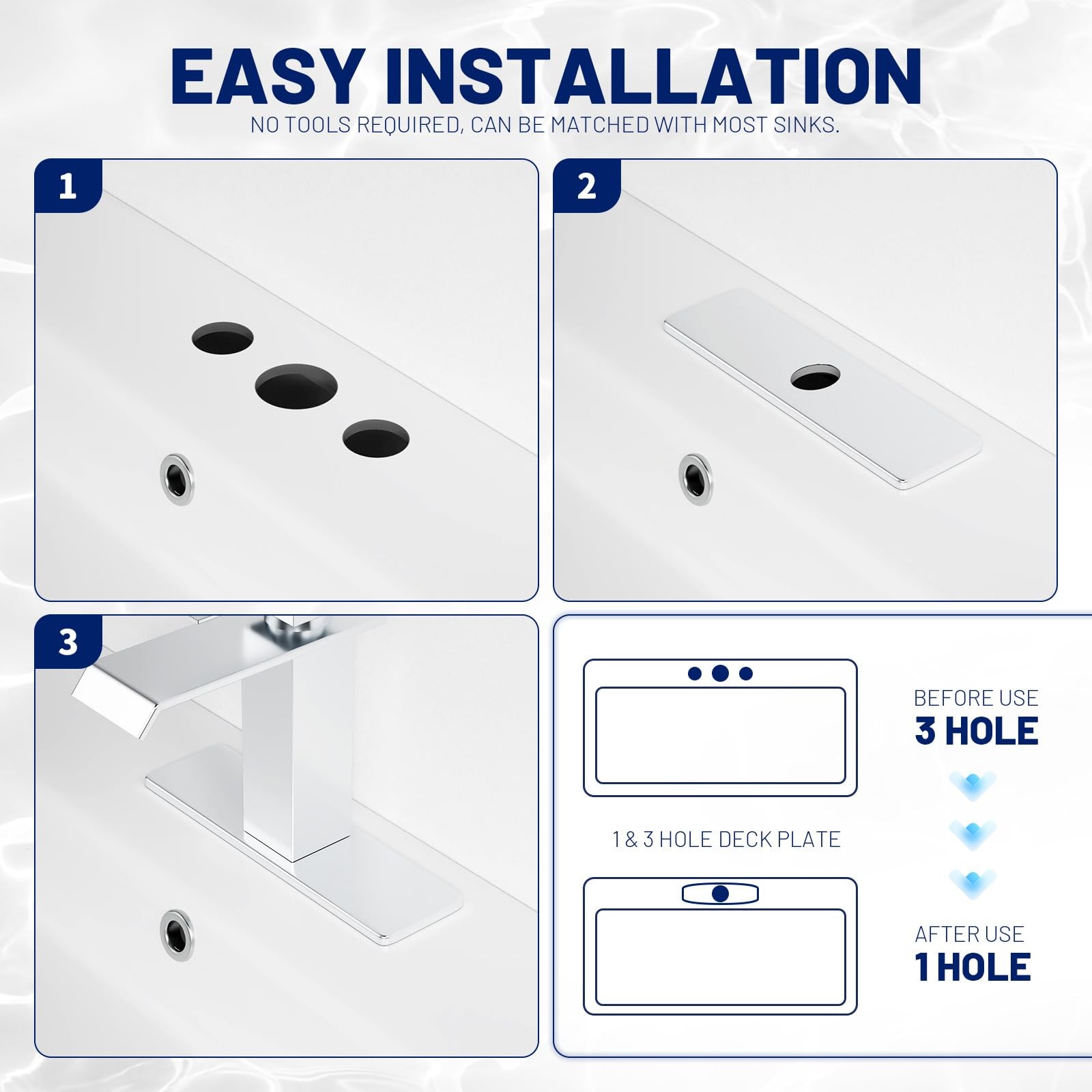 BWE Chrome Square 10 Inch Kitchen Sink Faucet Hole Cover Deck Plate Escutcheon