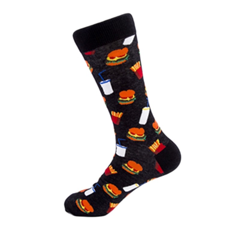5 Pairs Men Funny Food-Themed Crew Socks Hot Dog Chips Beer Humburger Hosiery