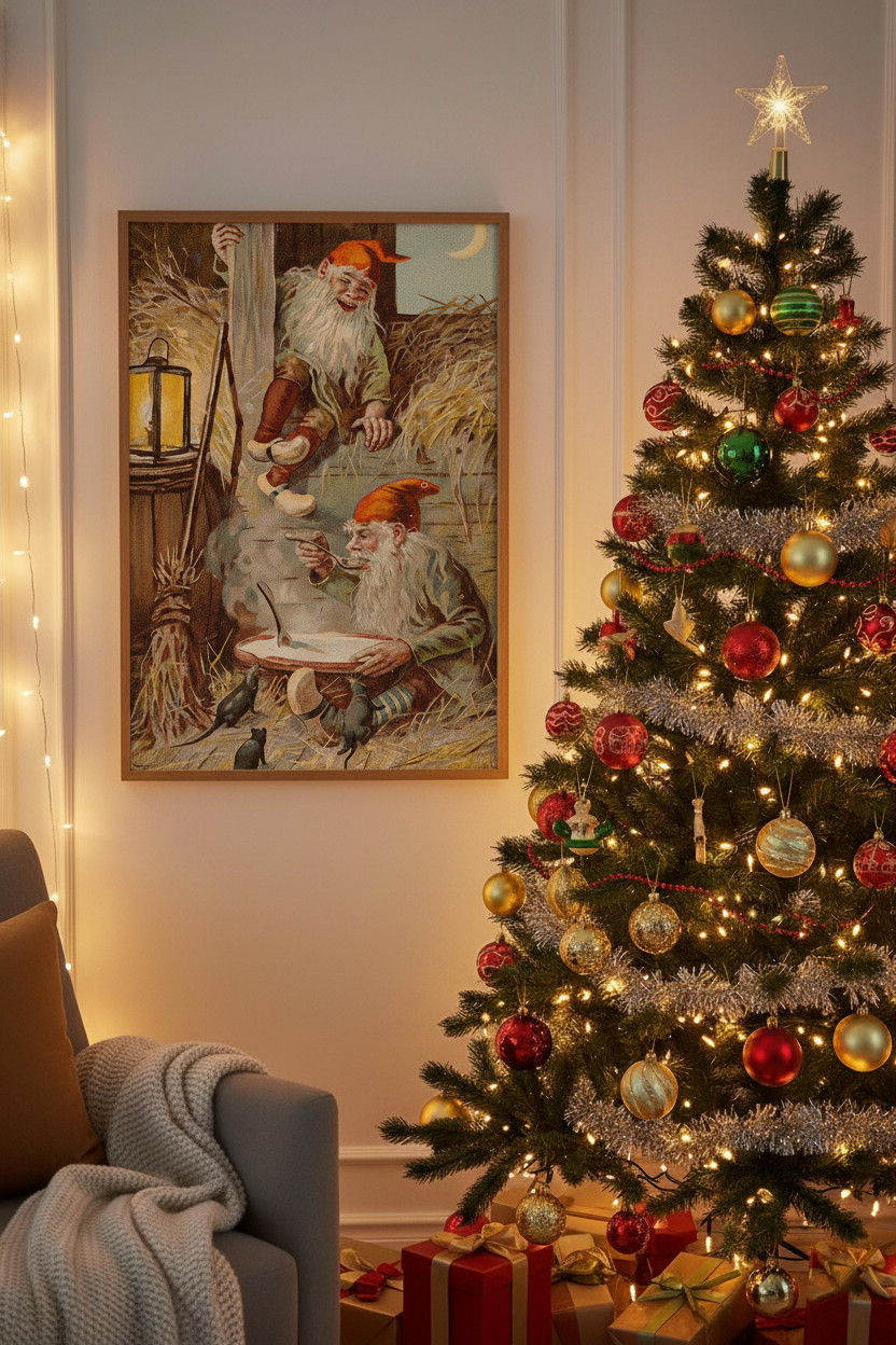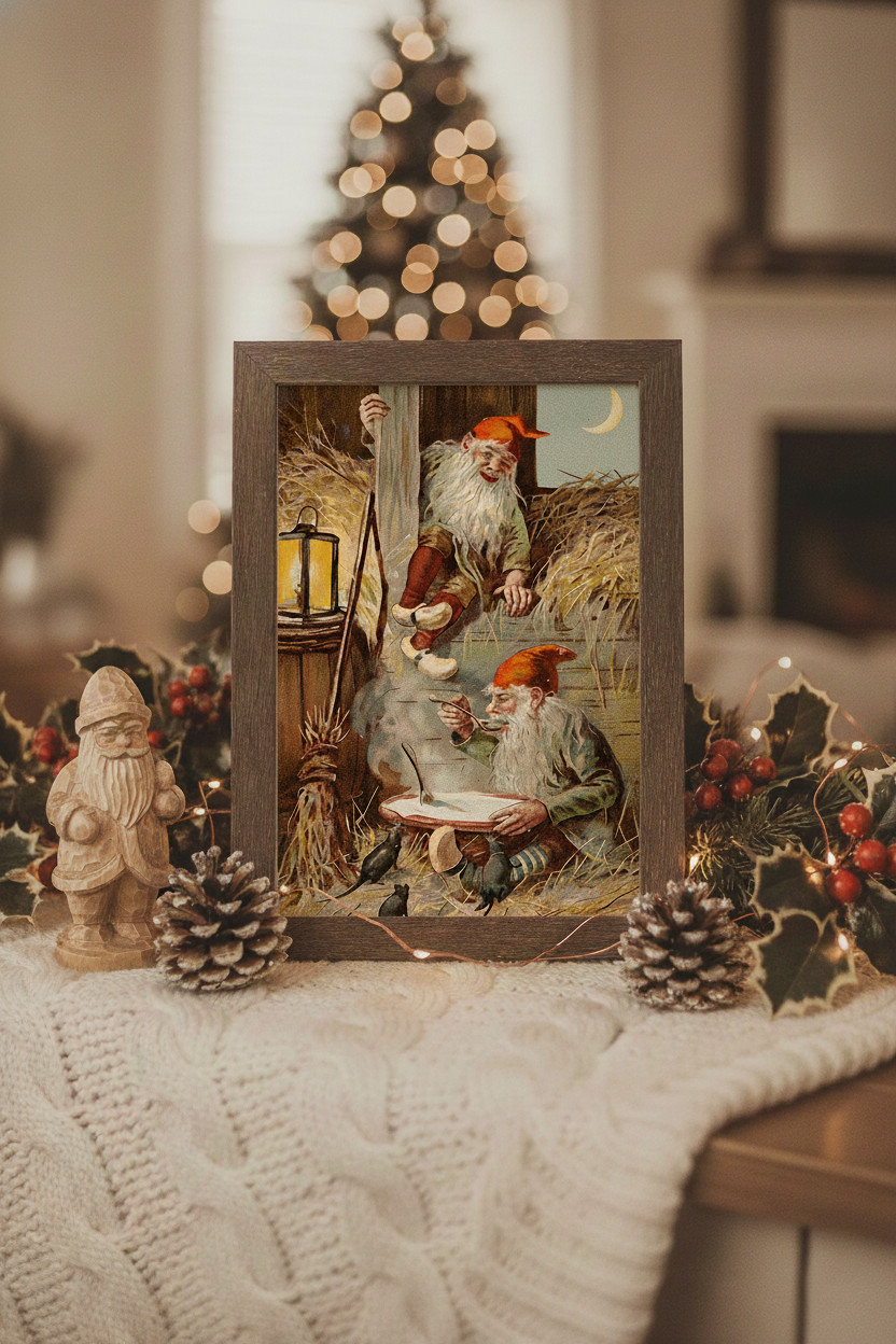 как выглядит Nostalgic Christmas Print Vintage Father Christmas Poster, Retro Holiday Decor фото