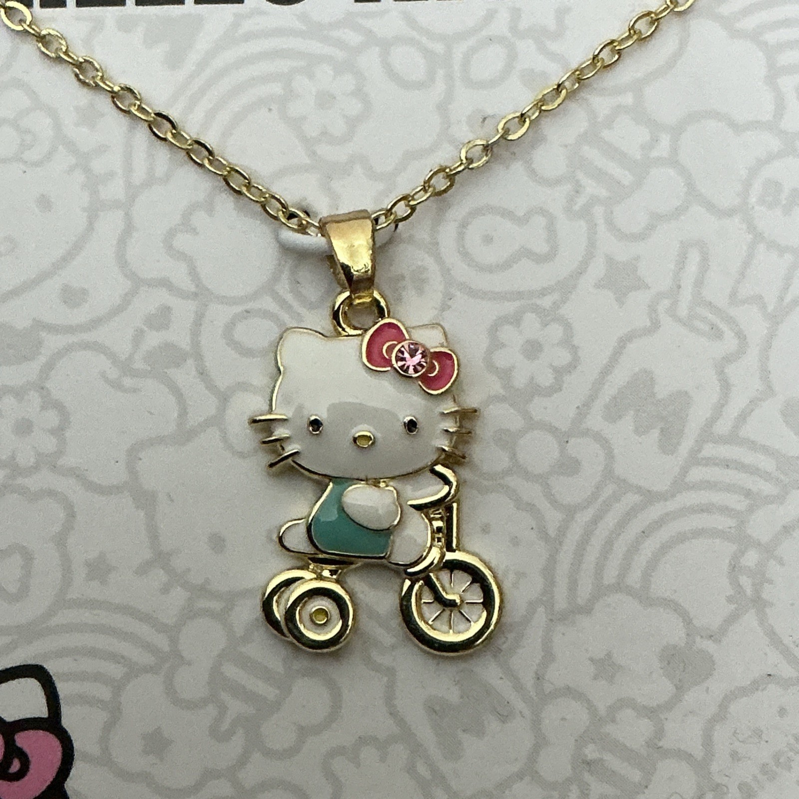 Hello Kitty Fine Gold Flash Plated Pendant Necklace NEW Bicycle