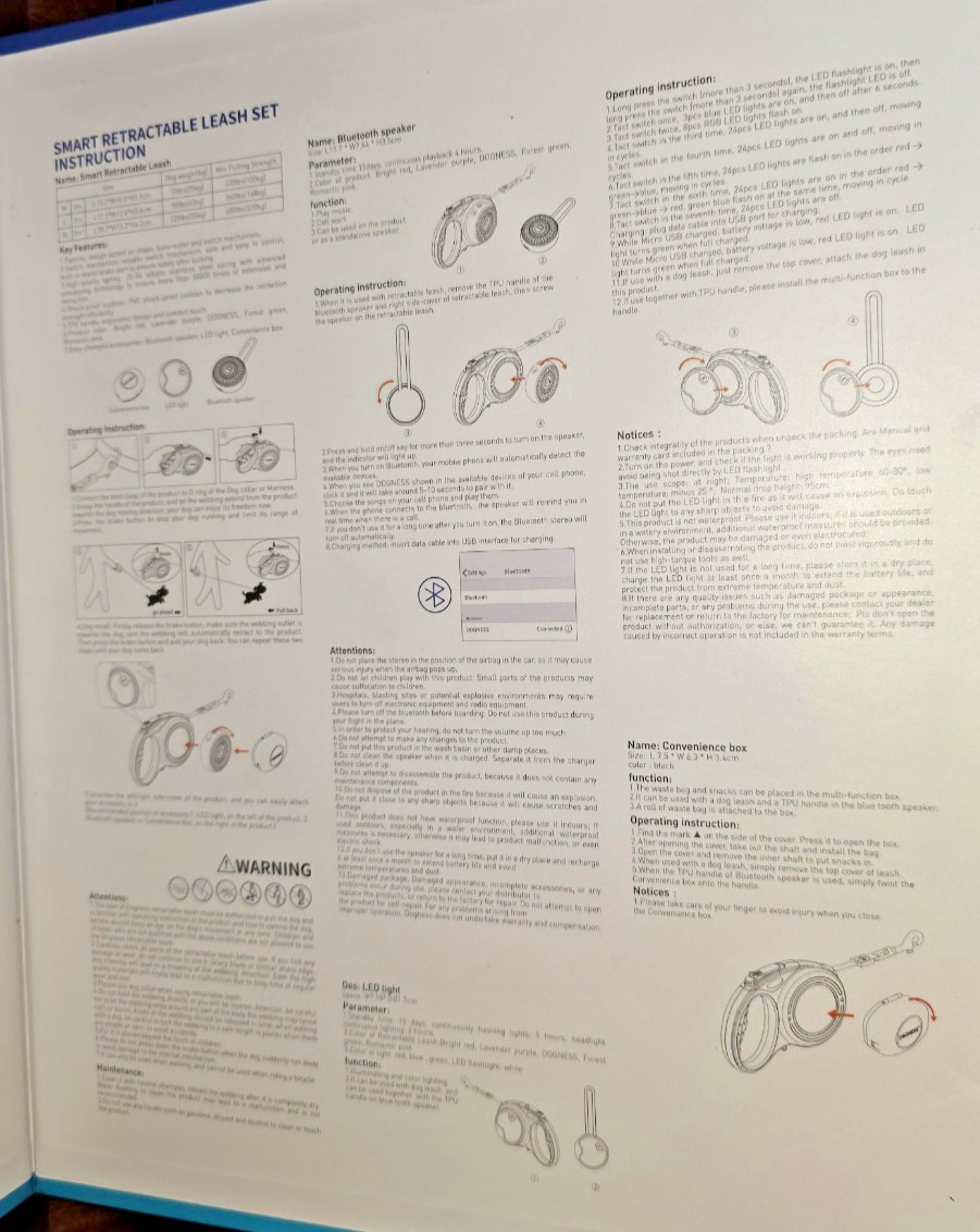 как выглядит NIB Dogness Smart Retractable Dog Leash Bluetooth Speaker LED Light фото