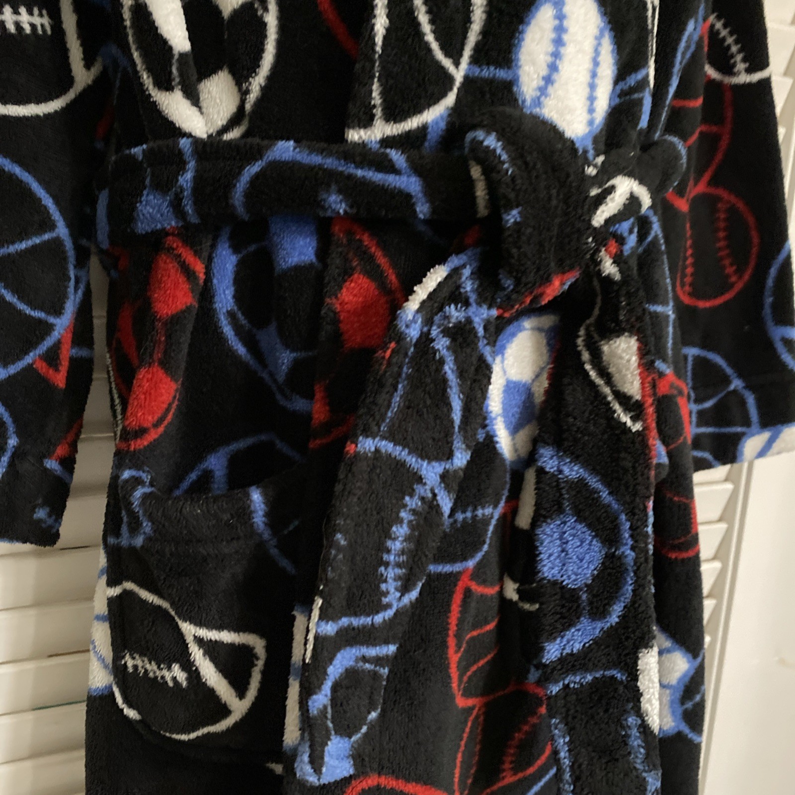 как выглядит Boys Sports Balls Soft Fleece Bath Robe, Small Soccer baseball football basket фото