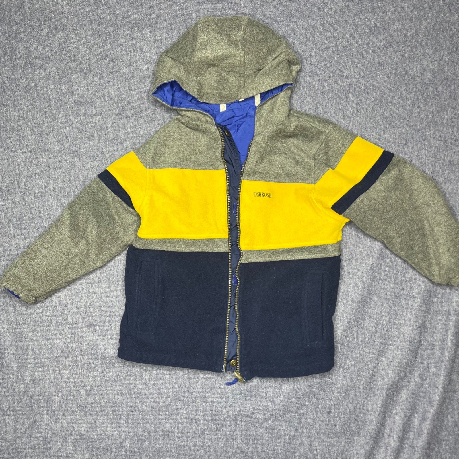 Vintage Reversible OshKosh B'gosh Kids Hooded Jacket with Fleece Lining Size L/7