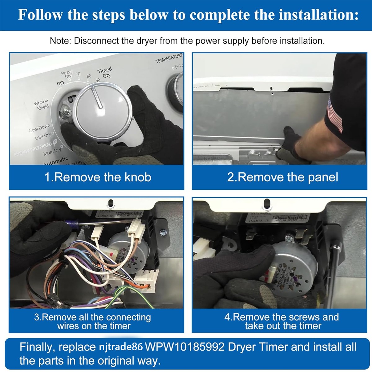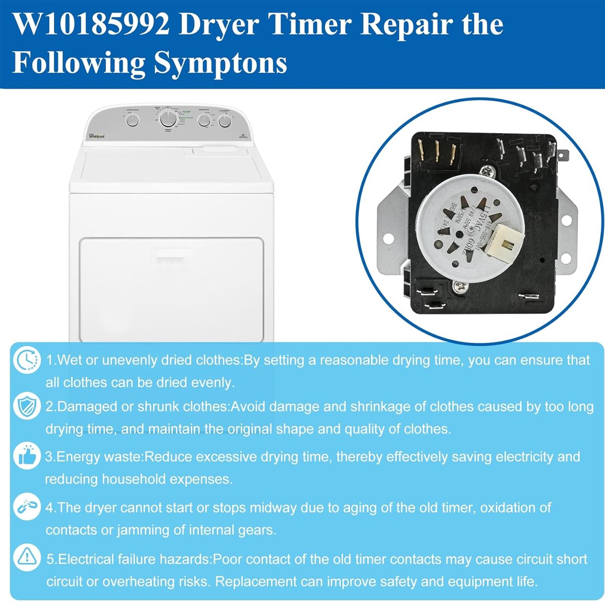 Dryer Timer Control for Whirlpool WGD5000DW2, WGD5000DW3, Crosley, Dryer etc