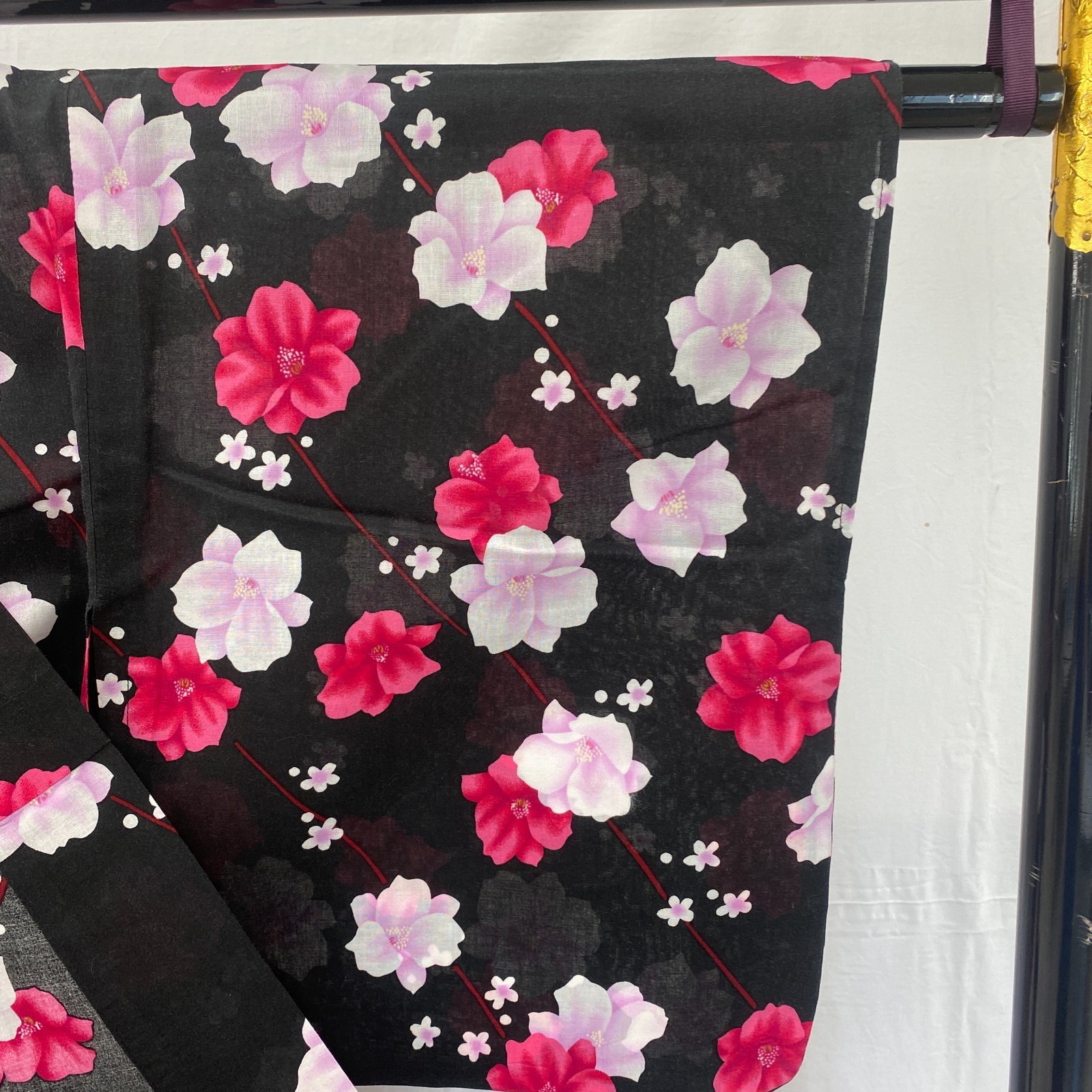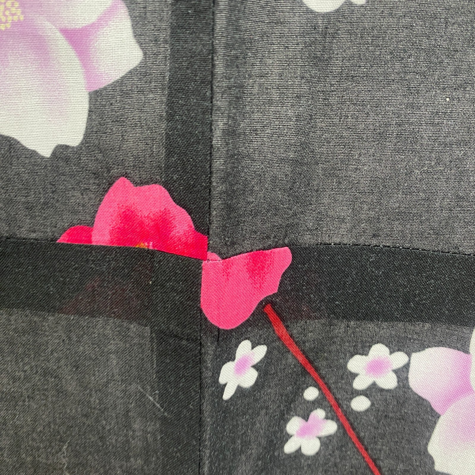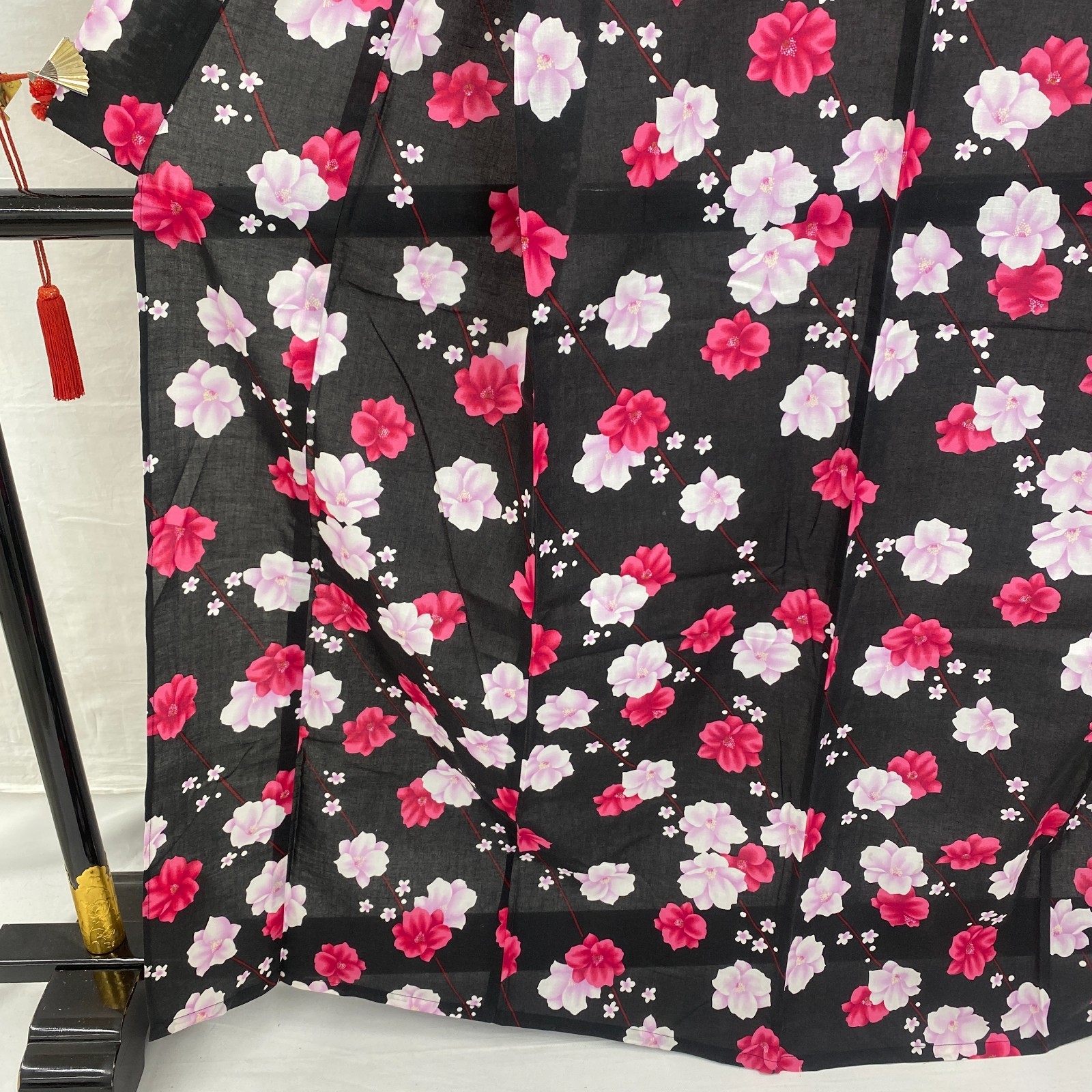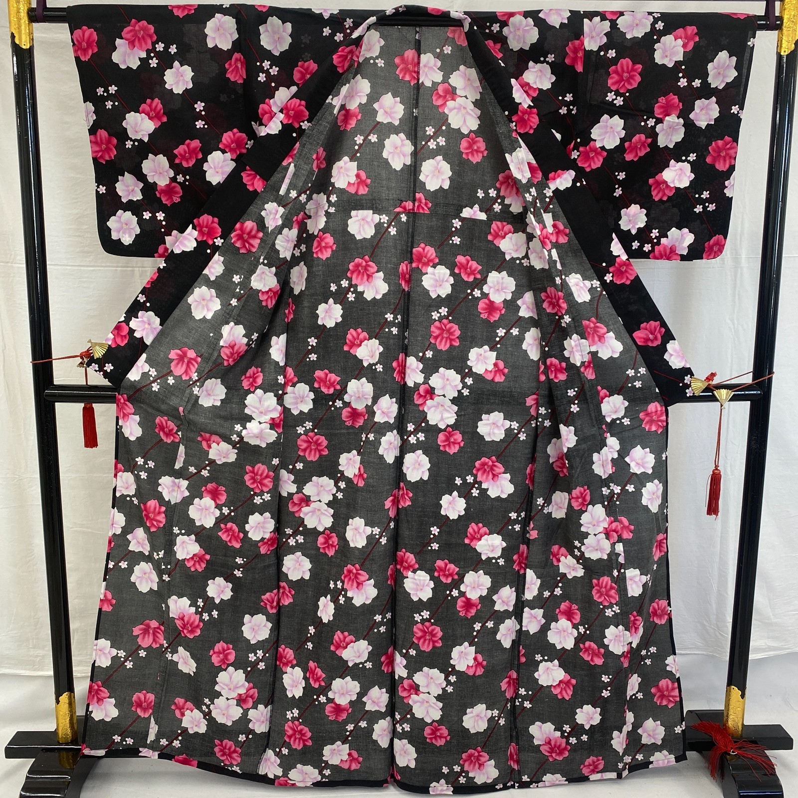 Japanese Vintage Kimono Yukata Cotton Black No Lining Traditional Length 63 in
