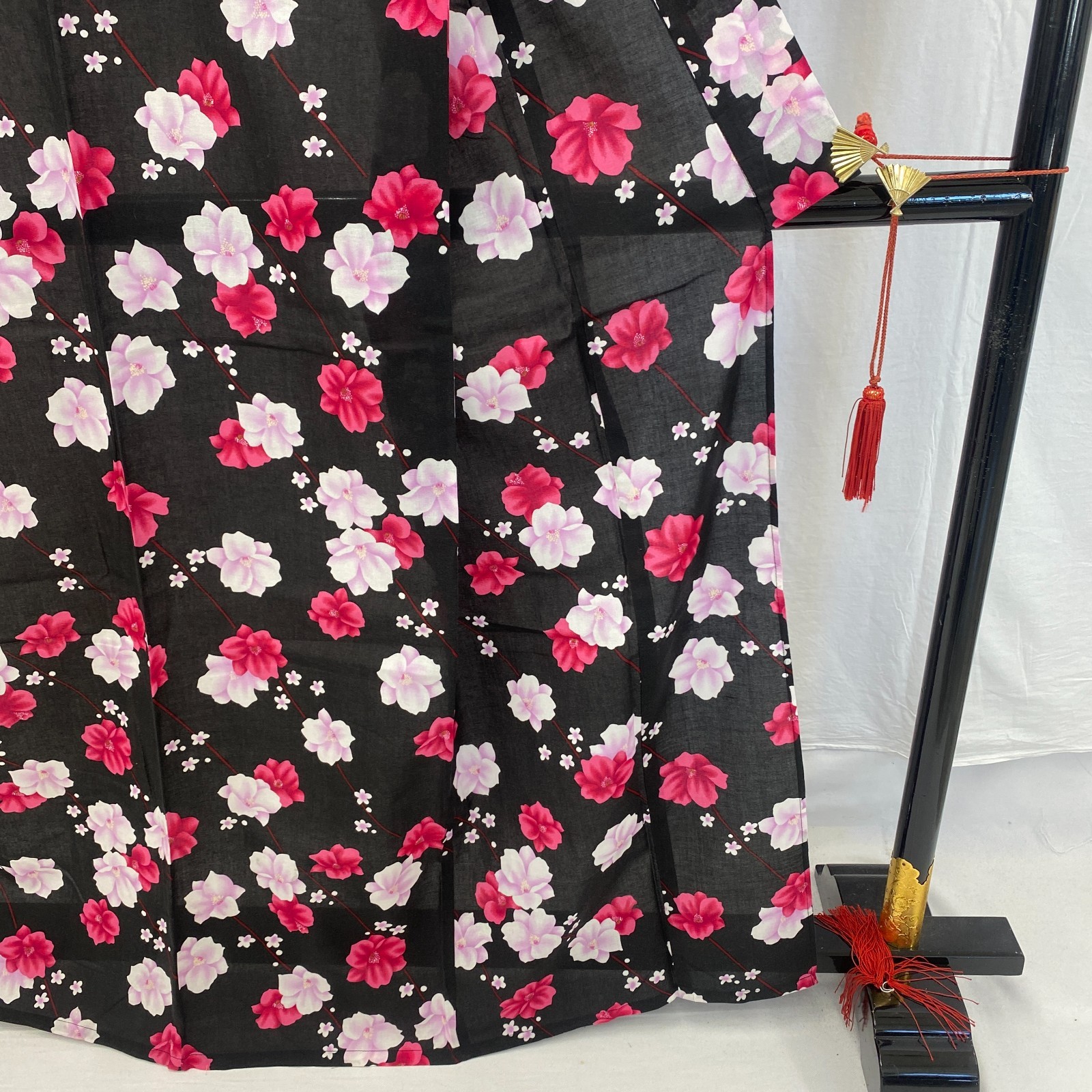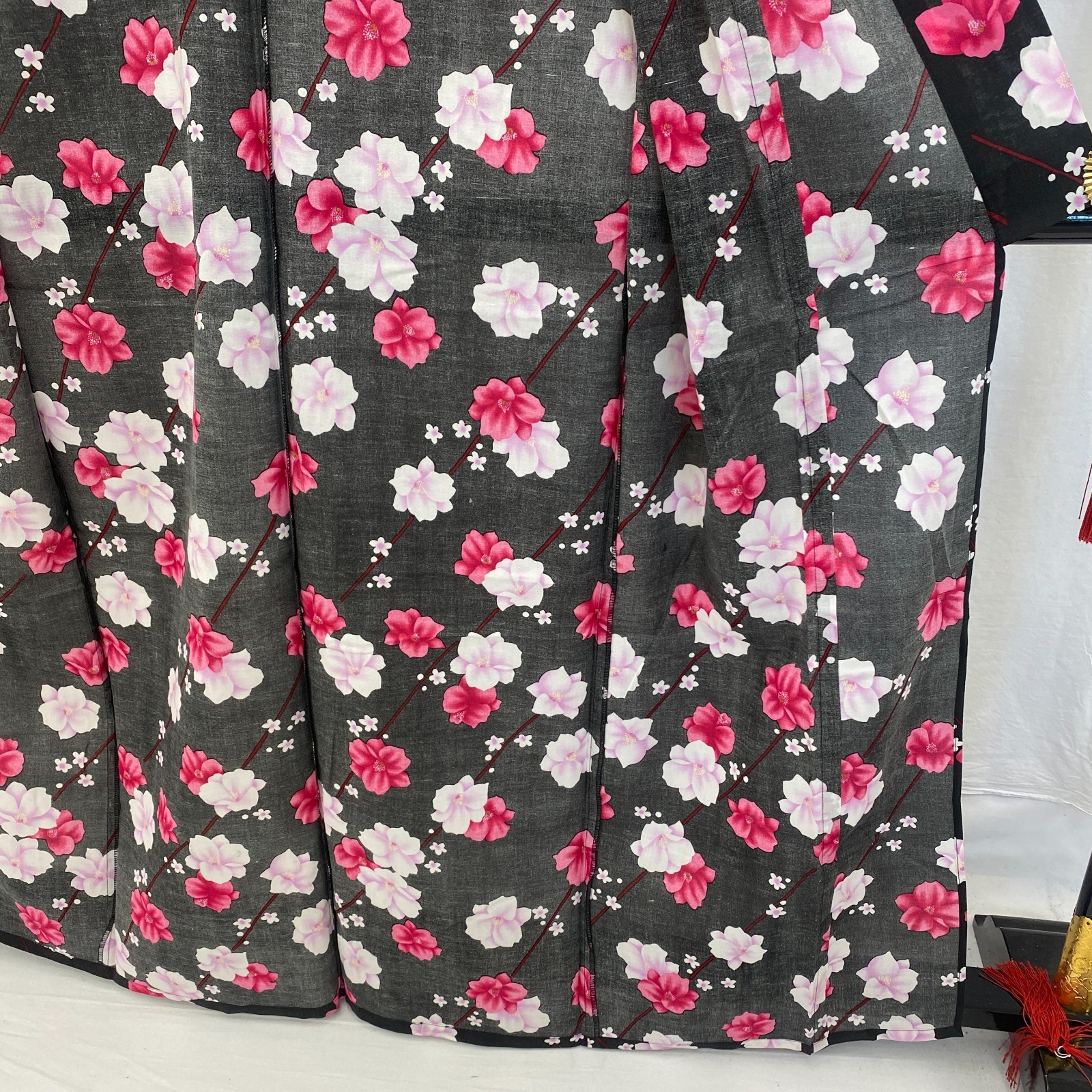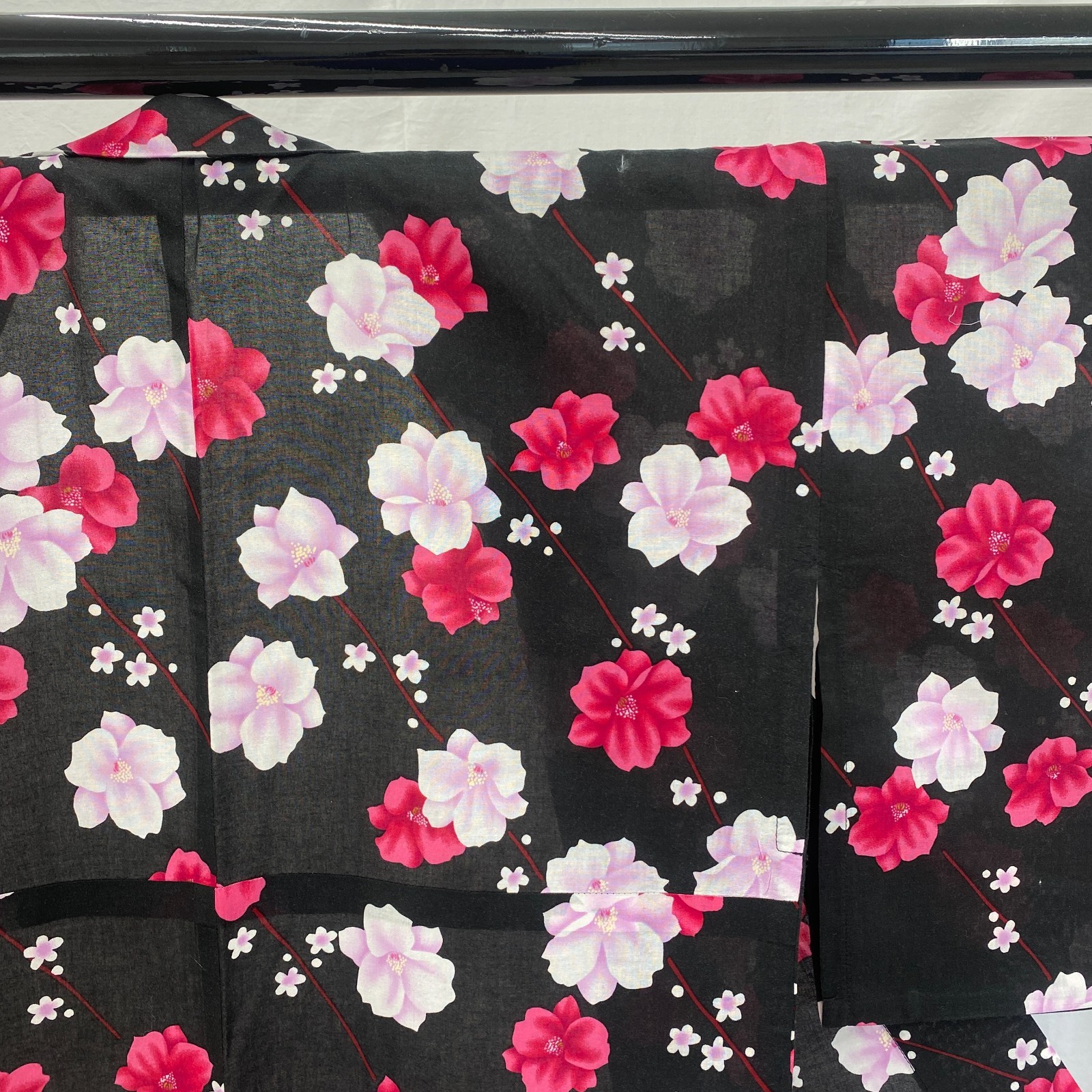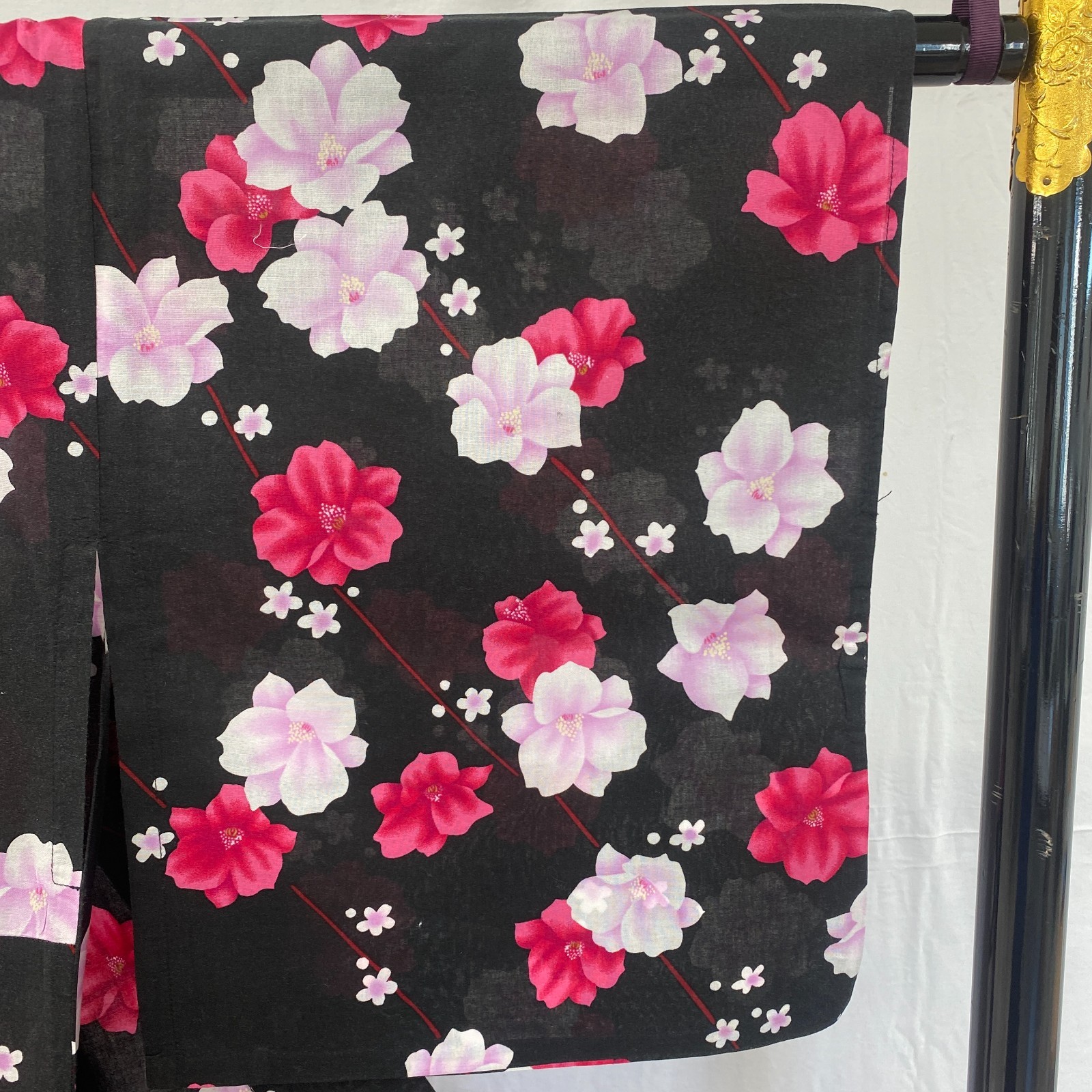 Japanese Vintage Kimono Yukata Cotton Black No Lining Traditional Length 63 in
