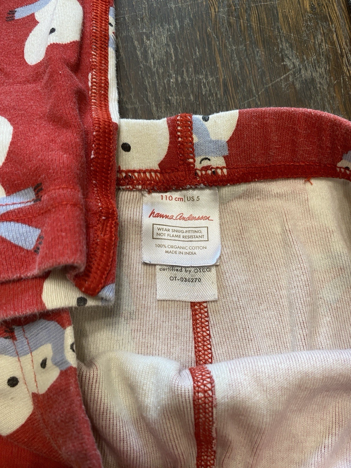Hanna Andersson Long John Pajamas Christmas Red Snowman Cotton Size 5