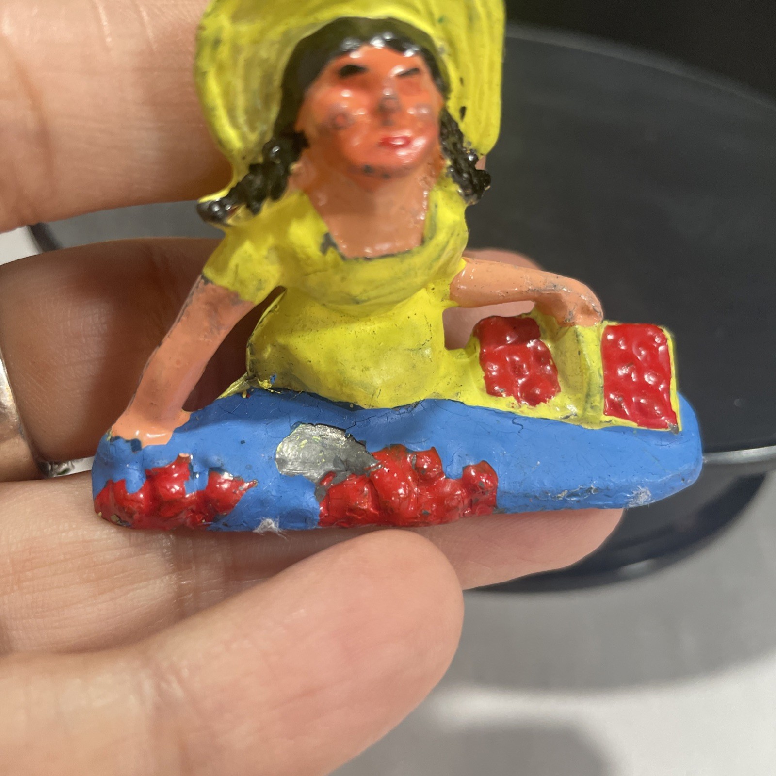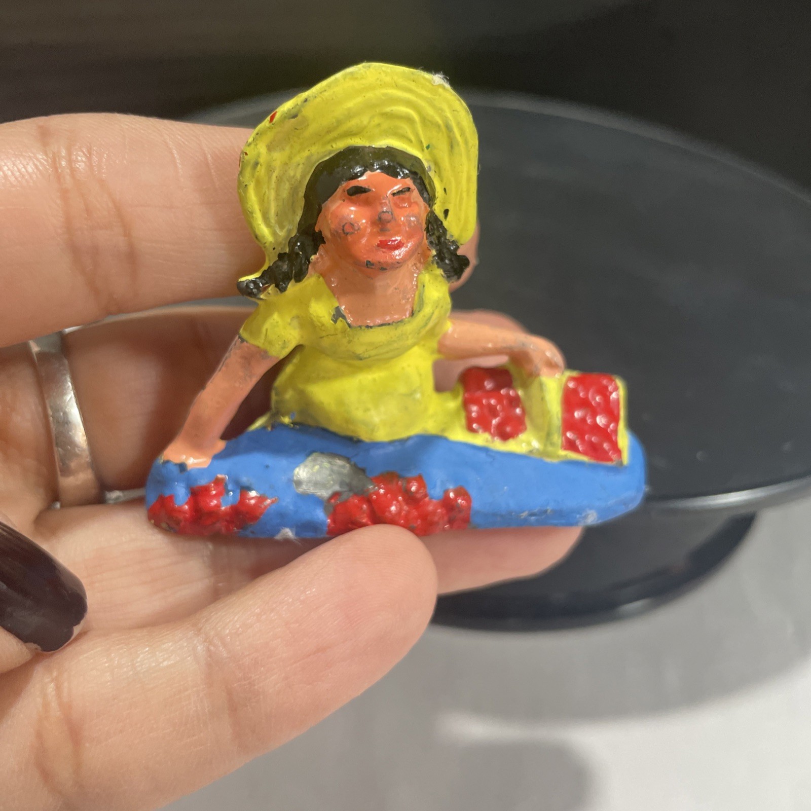 как выглядит Barclay Manoil Happy Farm Series Girl Picking Berries Lead Dime Store Figure фото