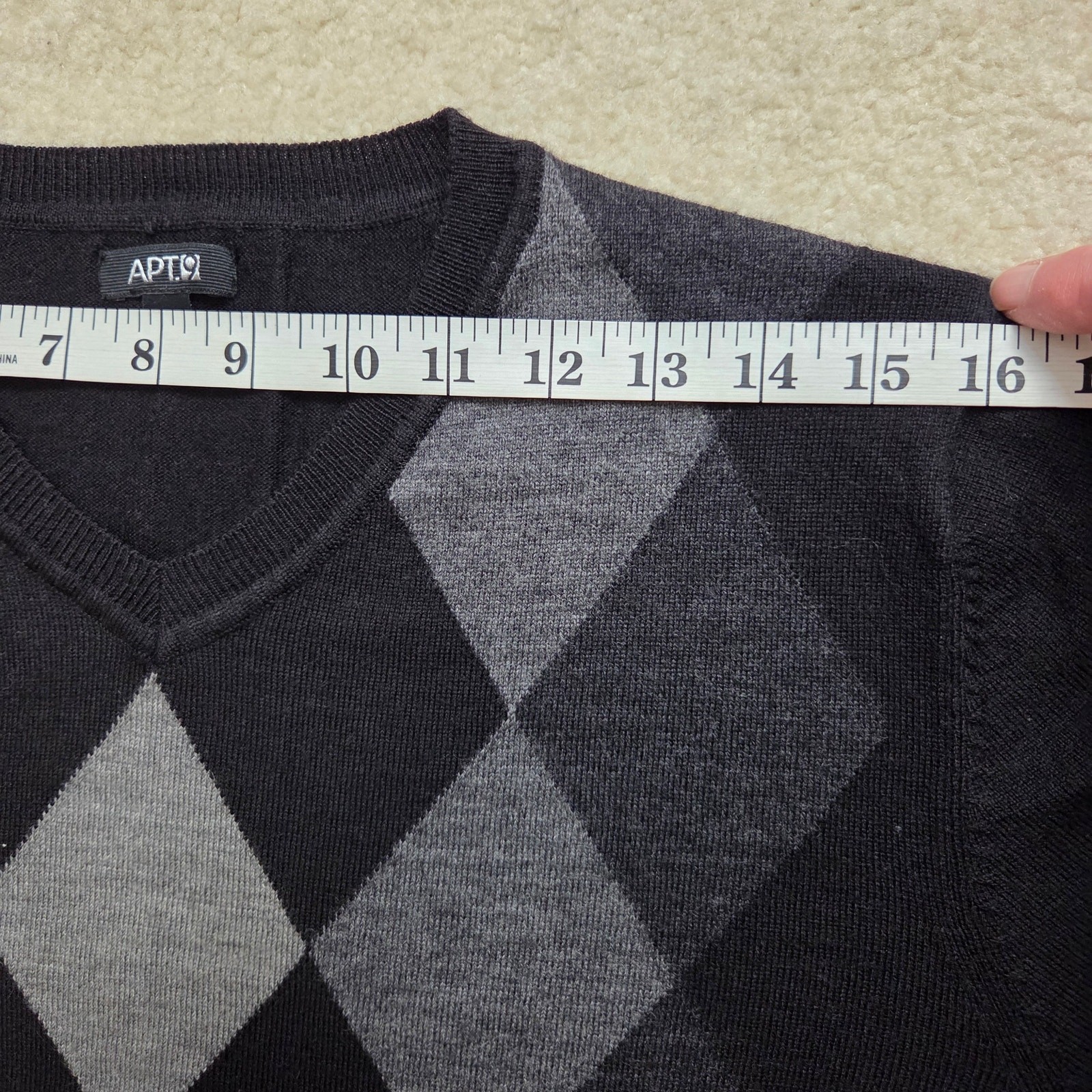 как выглядит EUC Mens Apt 9 Lg Wool Blend Pullover Argyle Crew Neck Sweater Black Gray фото