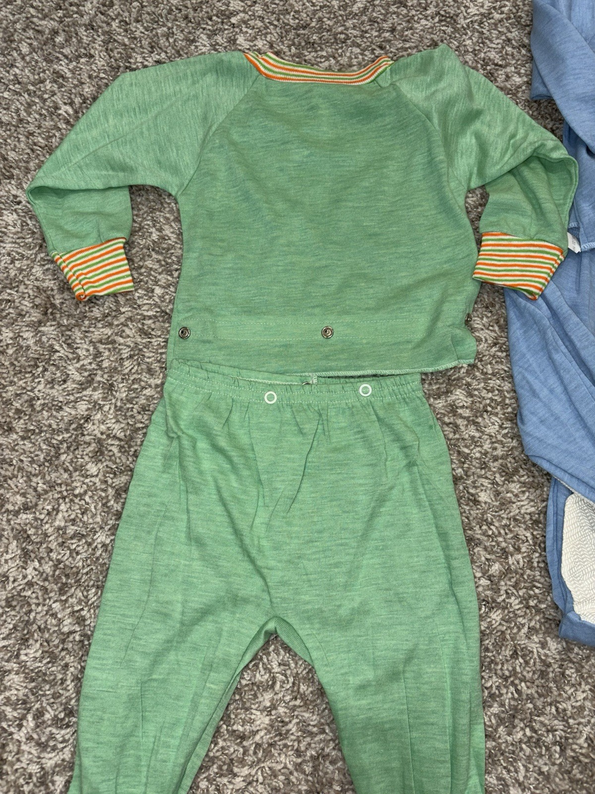 Baby 2 Piece Footed Pajamas Green Blue Snap On Sleepers infant 12 Mo Vtg