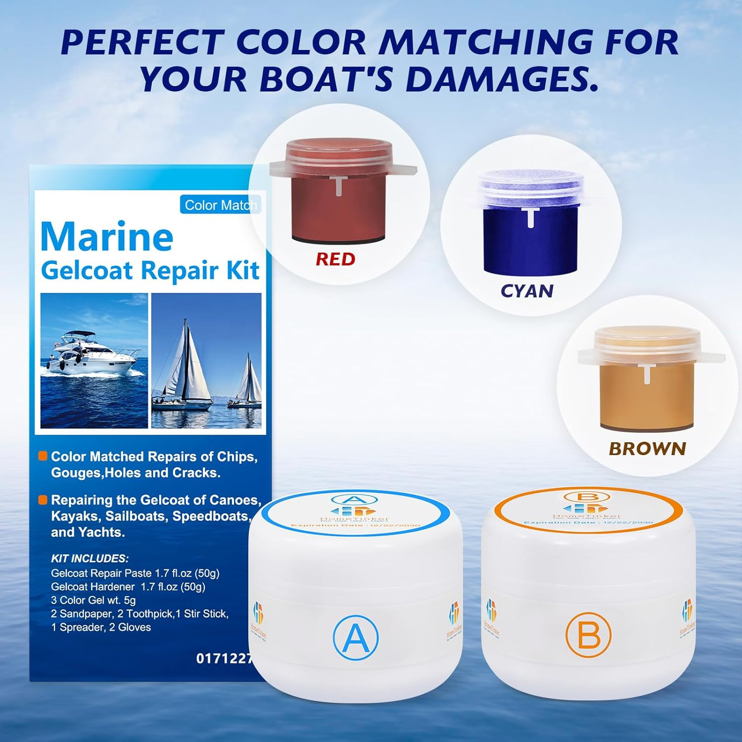 Gel Coat Repair Kit for Boats Color Match , Marine Fiberglass Repair Kit, Fiberg