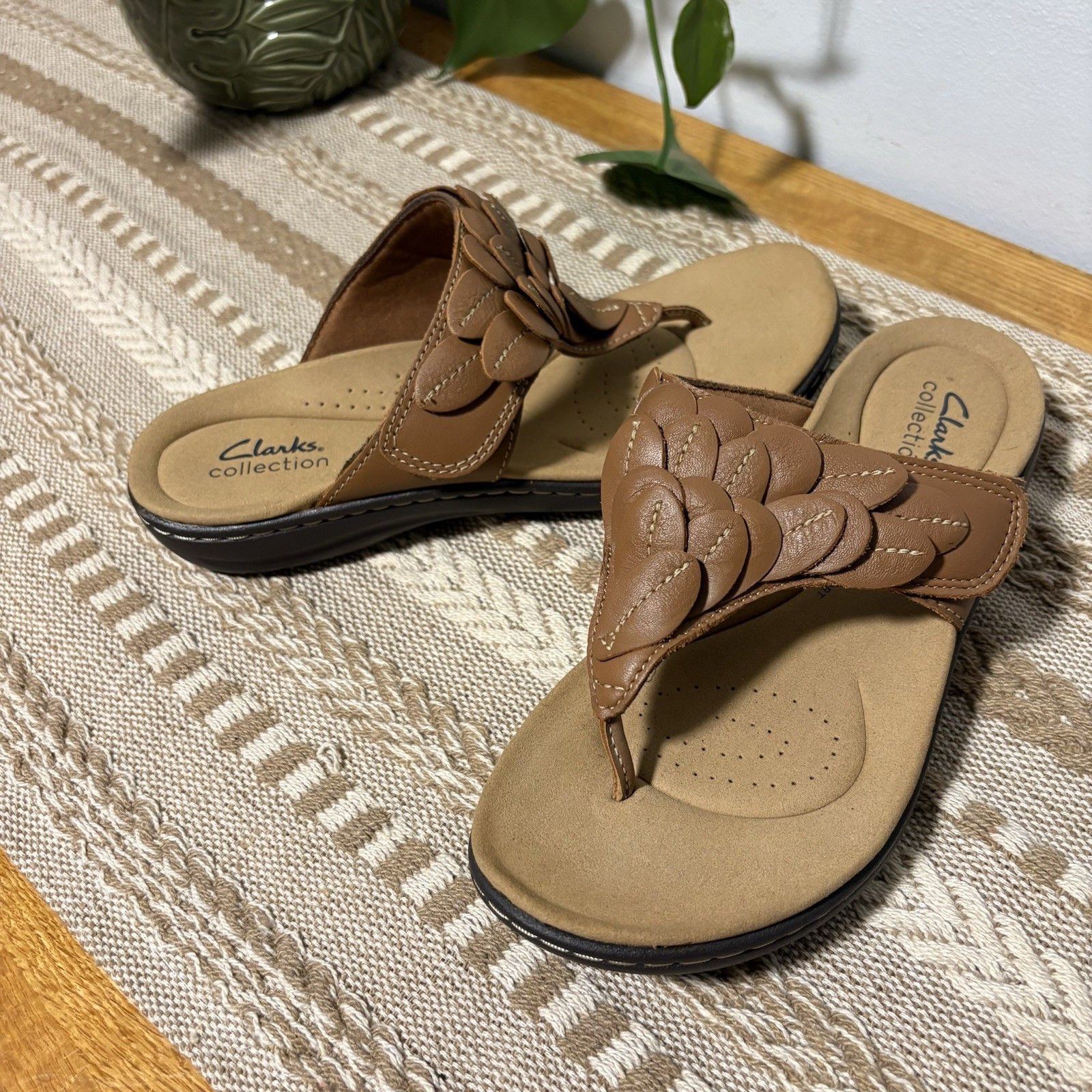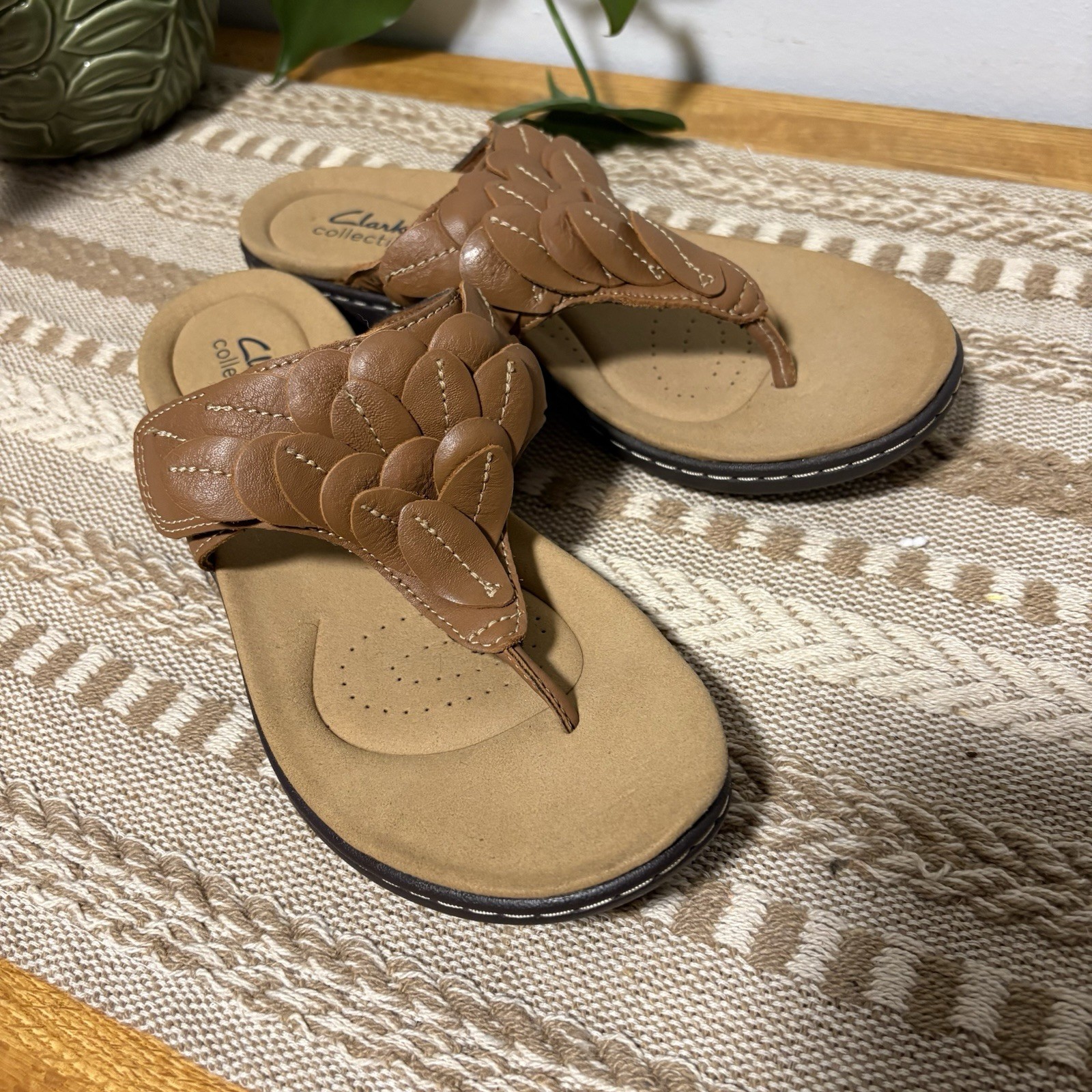 Clarks Collection Women's Thong Sandals Laurieann Palm Tan Leather 8 Fall