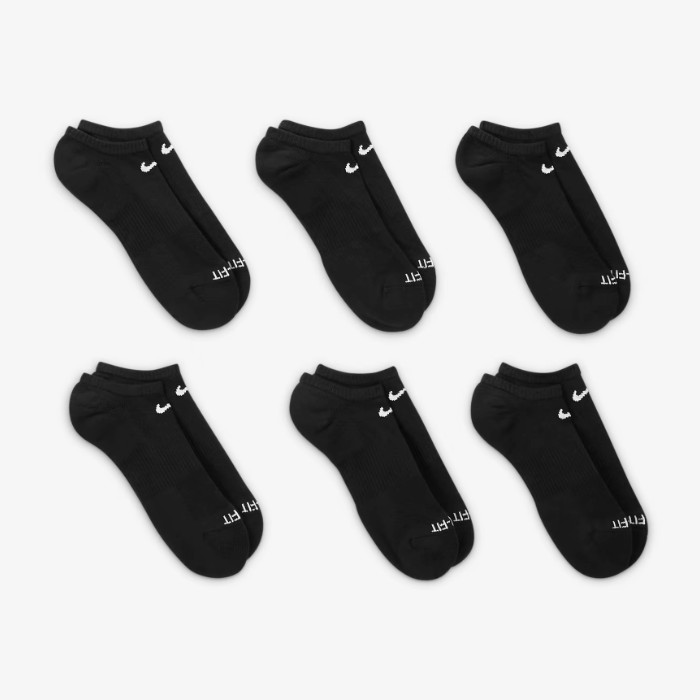 Nike Dri-FIT Everyday Plus Lightweight No-Show Socks 6 Pairs Black Adult Large