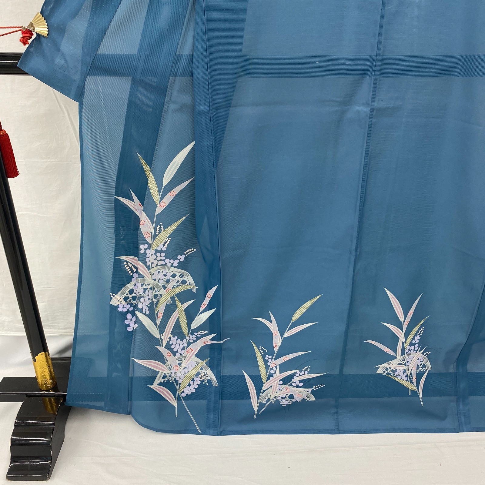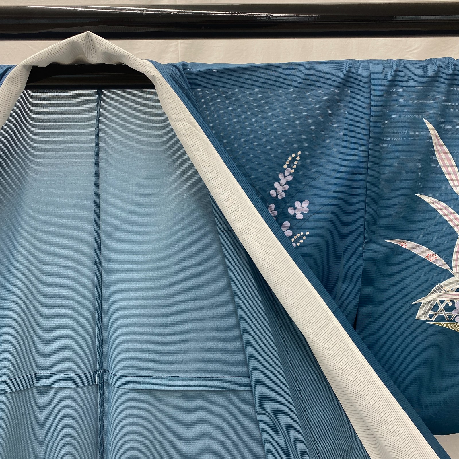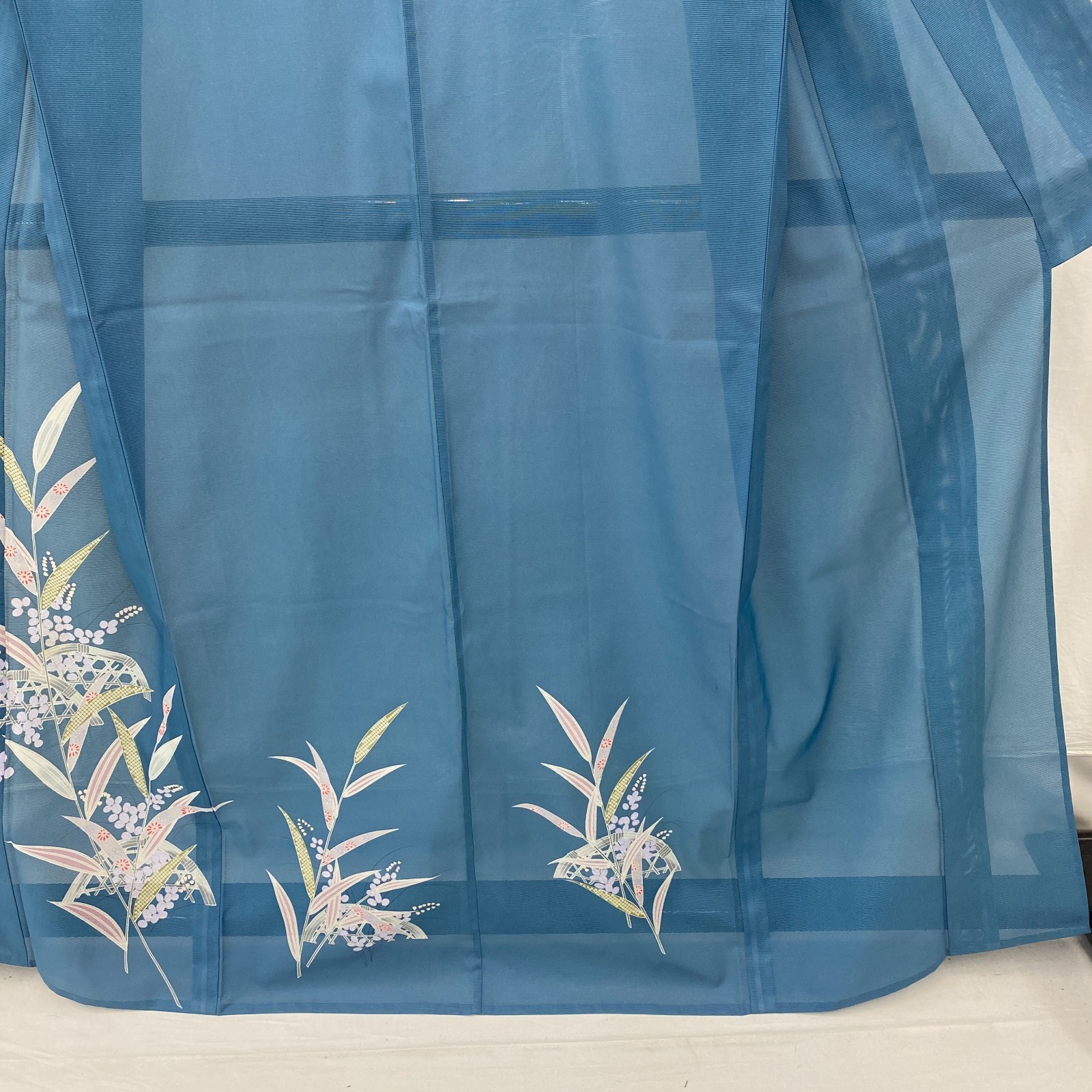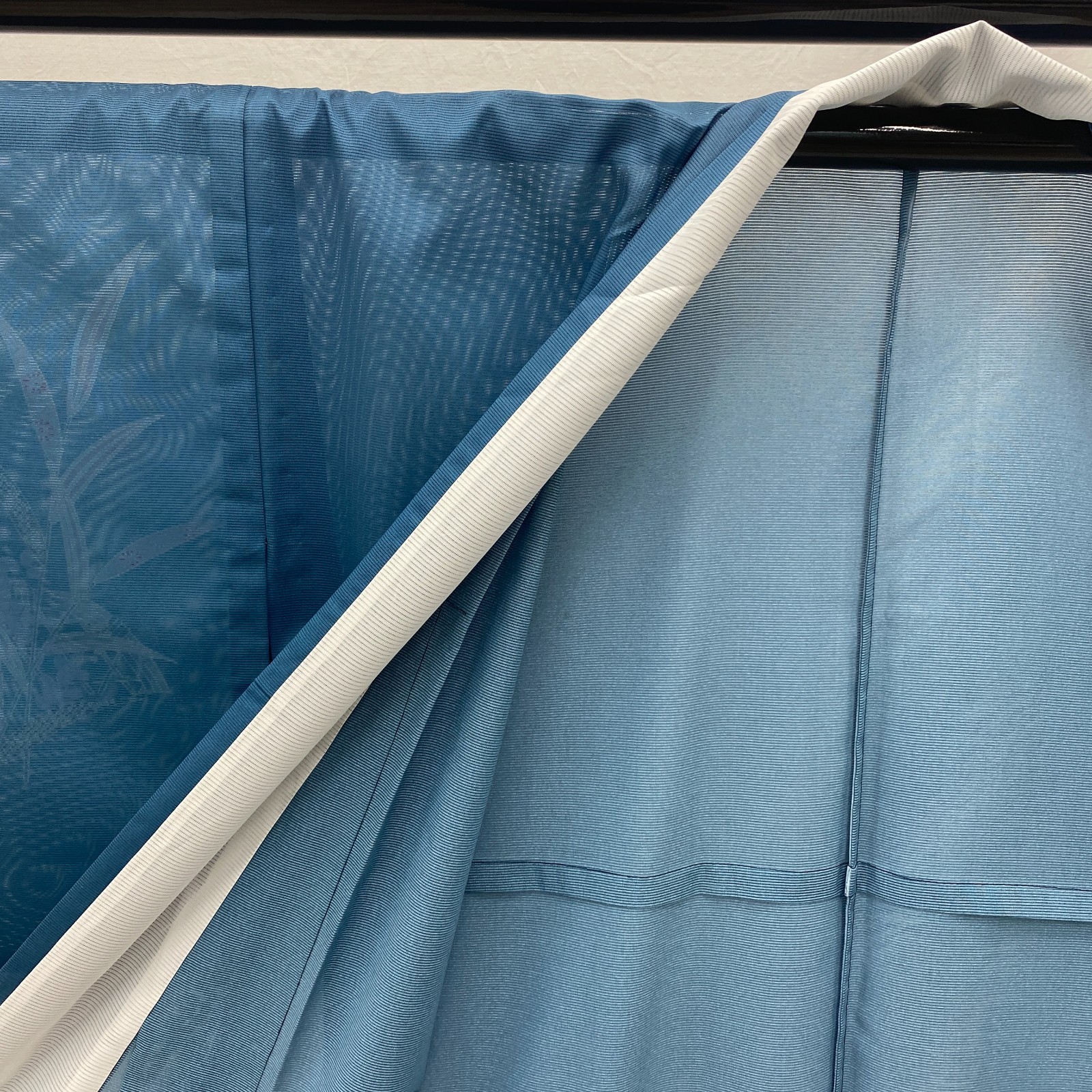 как выглядит Japanese Vintage Kimono Polyester Blue No Lining Seethrough Length 64 in фото
