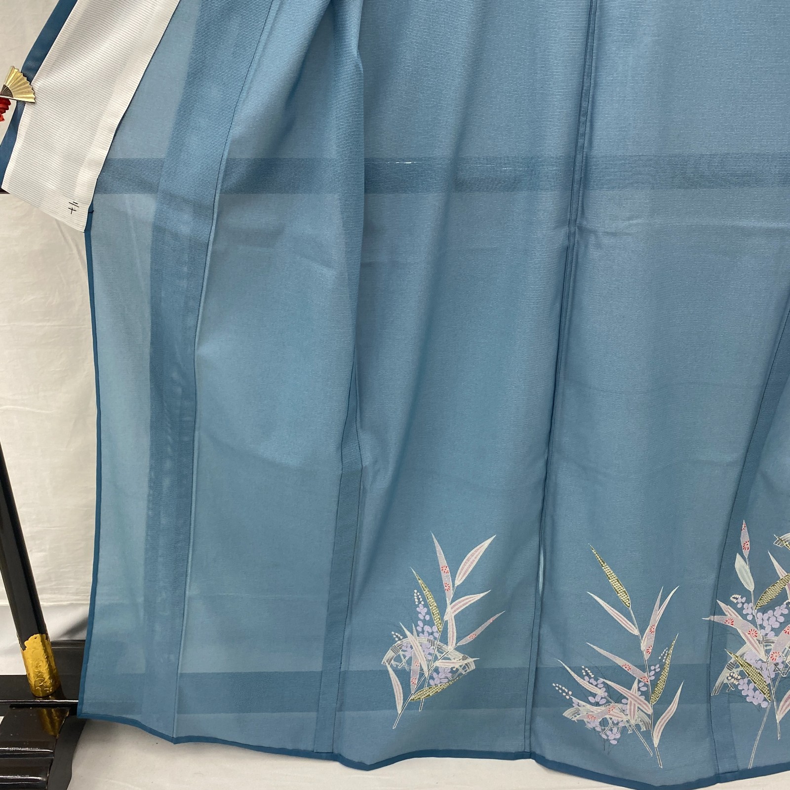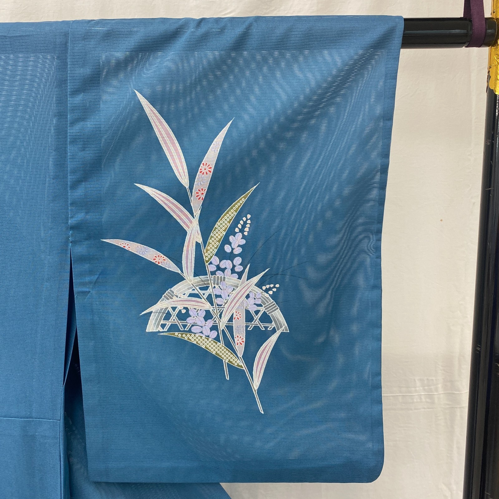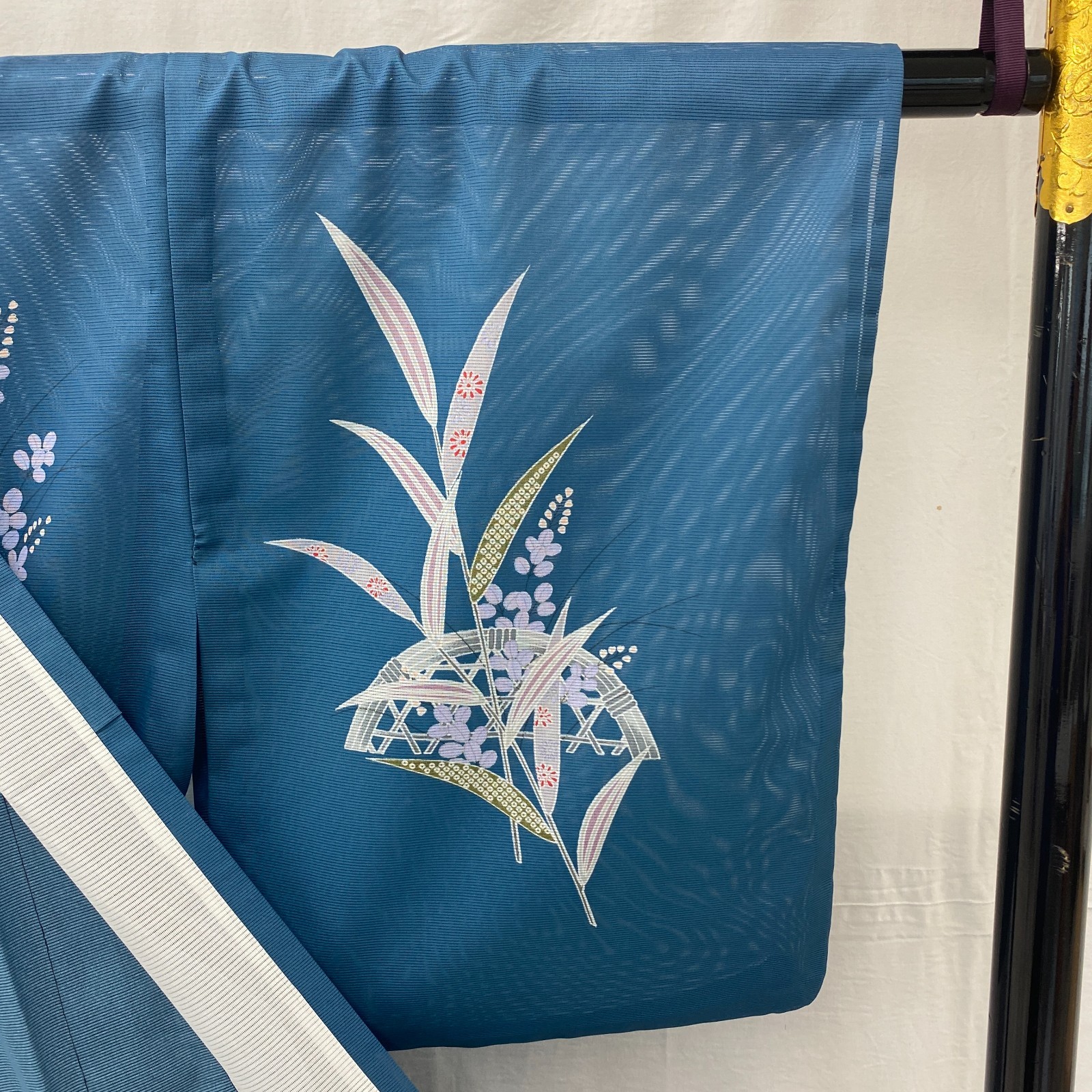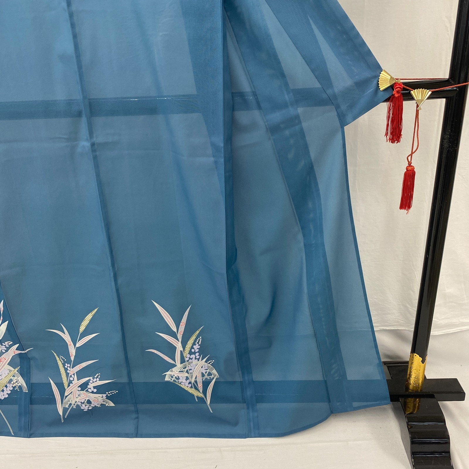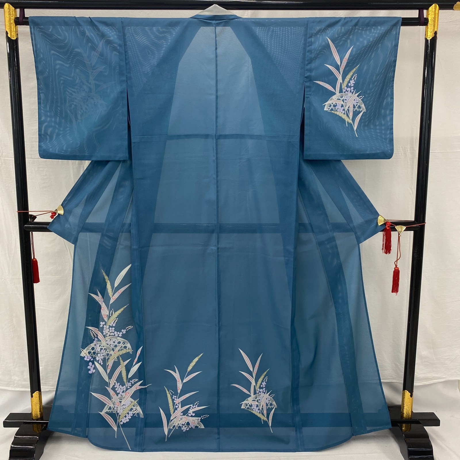 как выглядит Japanese Vintage Kimono Polyester Blue No Lining Seethrough Length 64 in фото