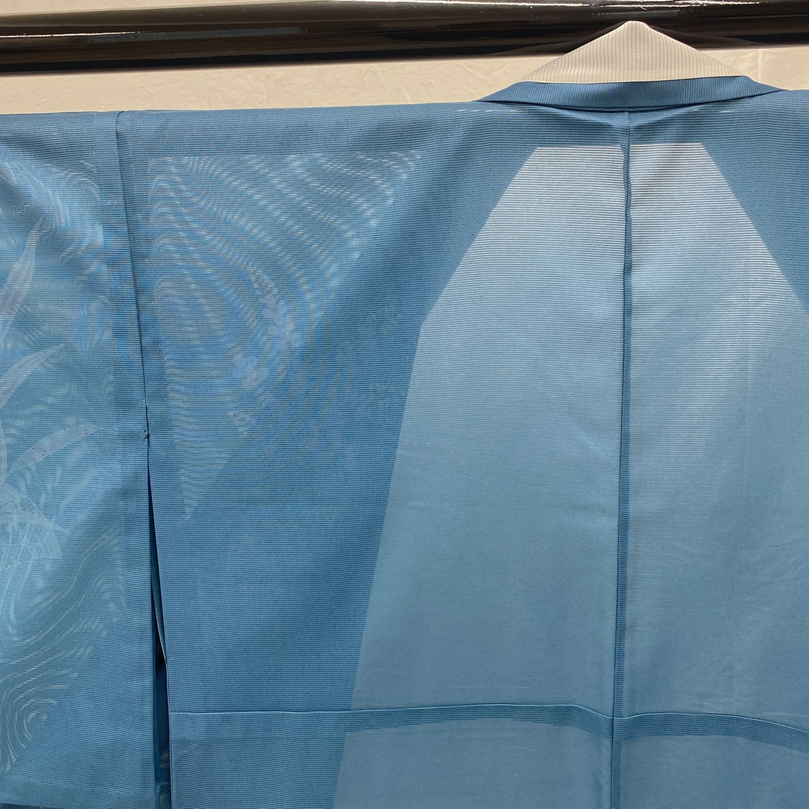 Japanese Vintage Kimono Polyester Blue No Lining Seethrough Length 64 in