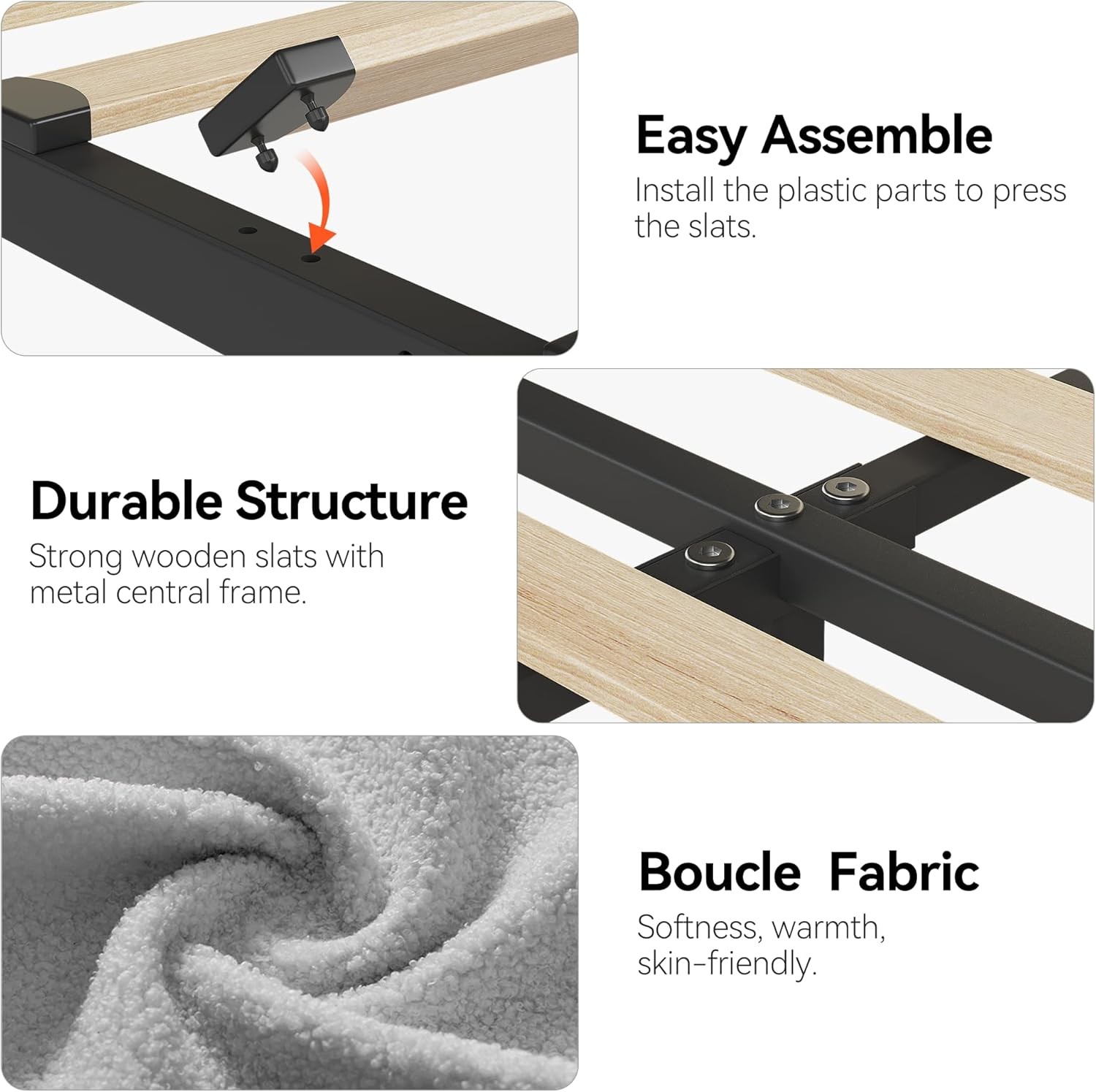 --Luxurious Elegance: This platform bed frame features a soft boucle fabric upholstered