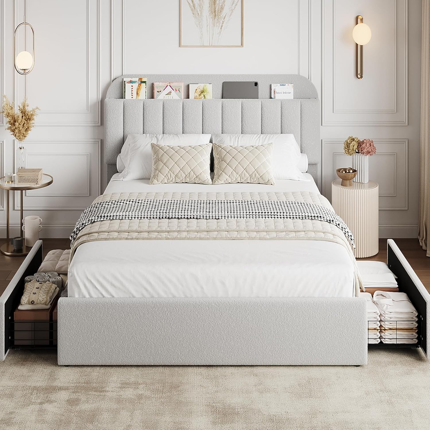 --Smart Storage: The full bed frame with innovative storage headboard provides ple