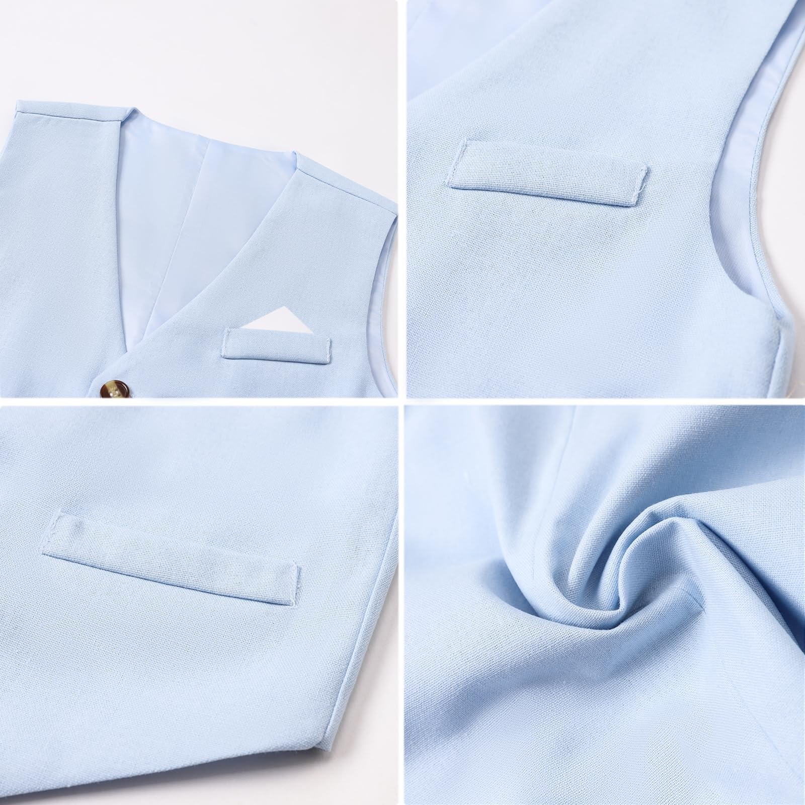 Boys' Long Sleeve Gentleman Suit Outfits Shirts Vests Pants Sets, Linen Blue