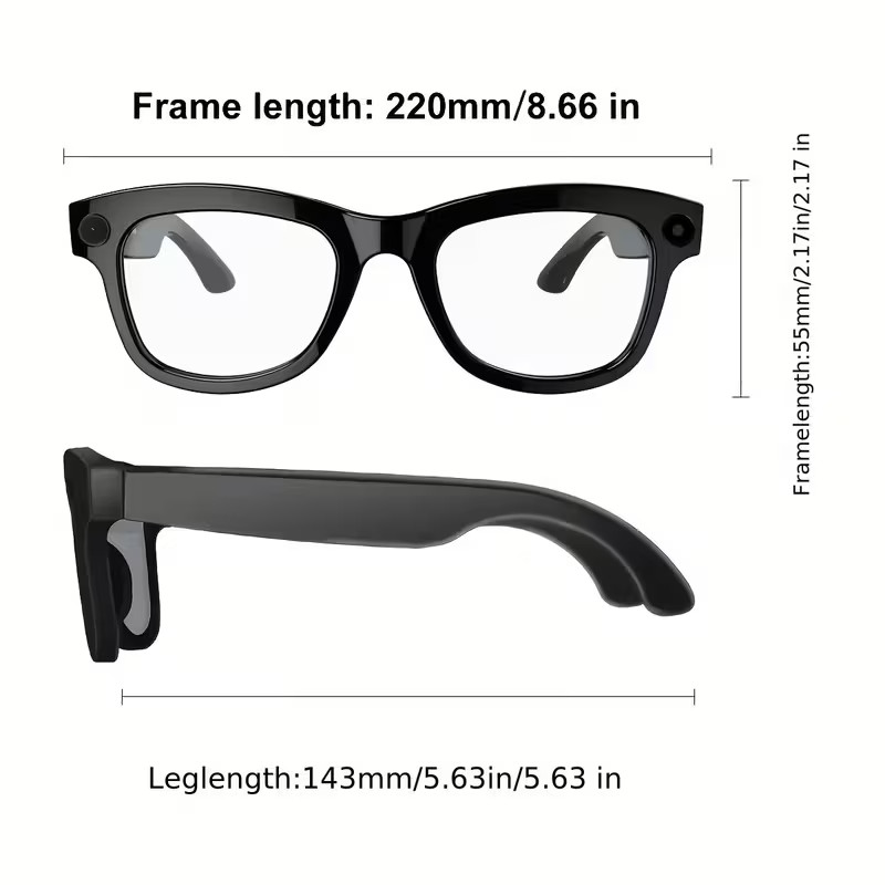 Smart Camera Sunglasses w/ 8 MP HD, Wi-Fi, Bluetooth, 4 h Play Black