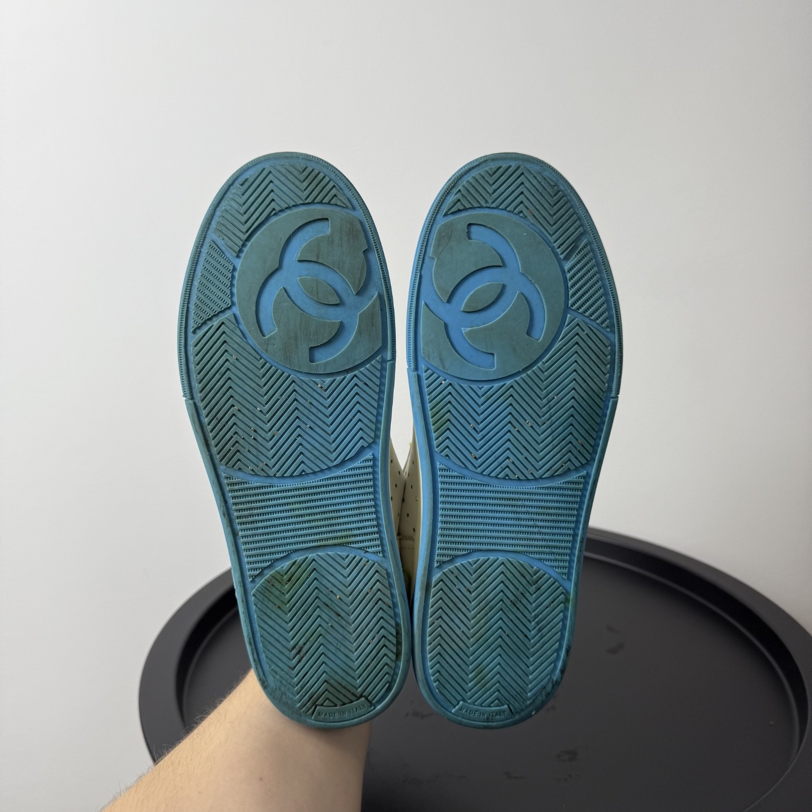 как выглядит Vintage Chanel Rare Womens White Leather Low Top Sneakers фото