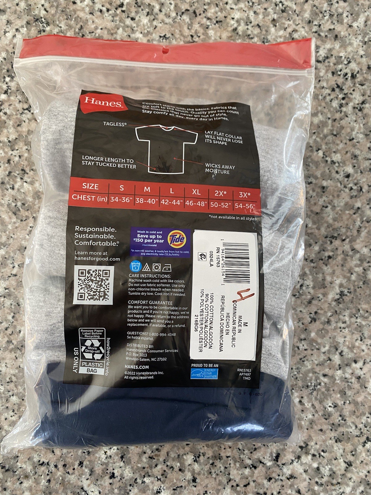 как выглядит Hanes Mens Med Tagless Crew Neck T-Shirt Colored Gray Blue Pack of 4 100 Cotton фото