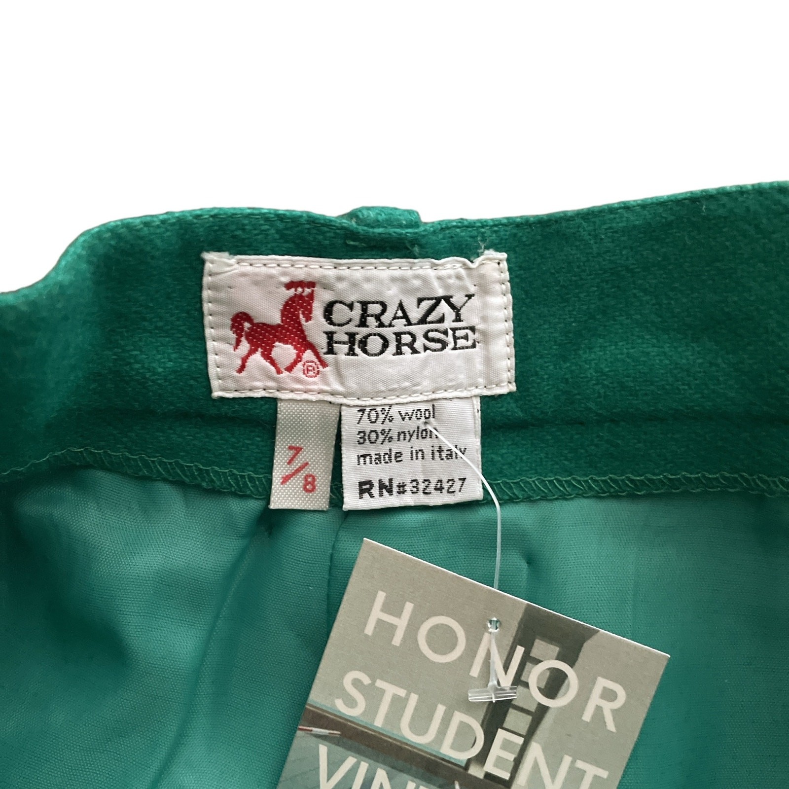 1970s Vintage Crazy Horse Kelly Green Wool Blend High Waist Trouser Pants 7/8