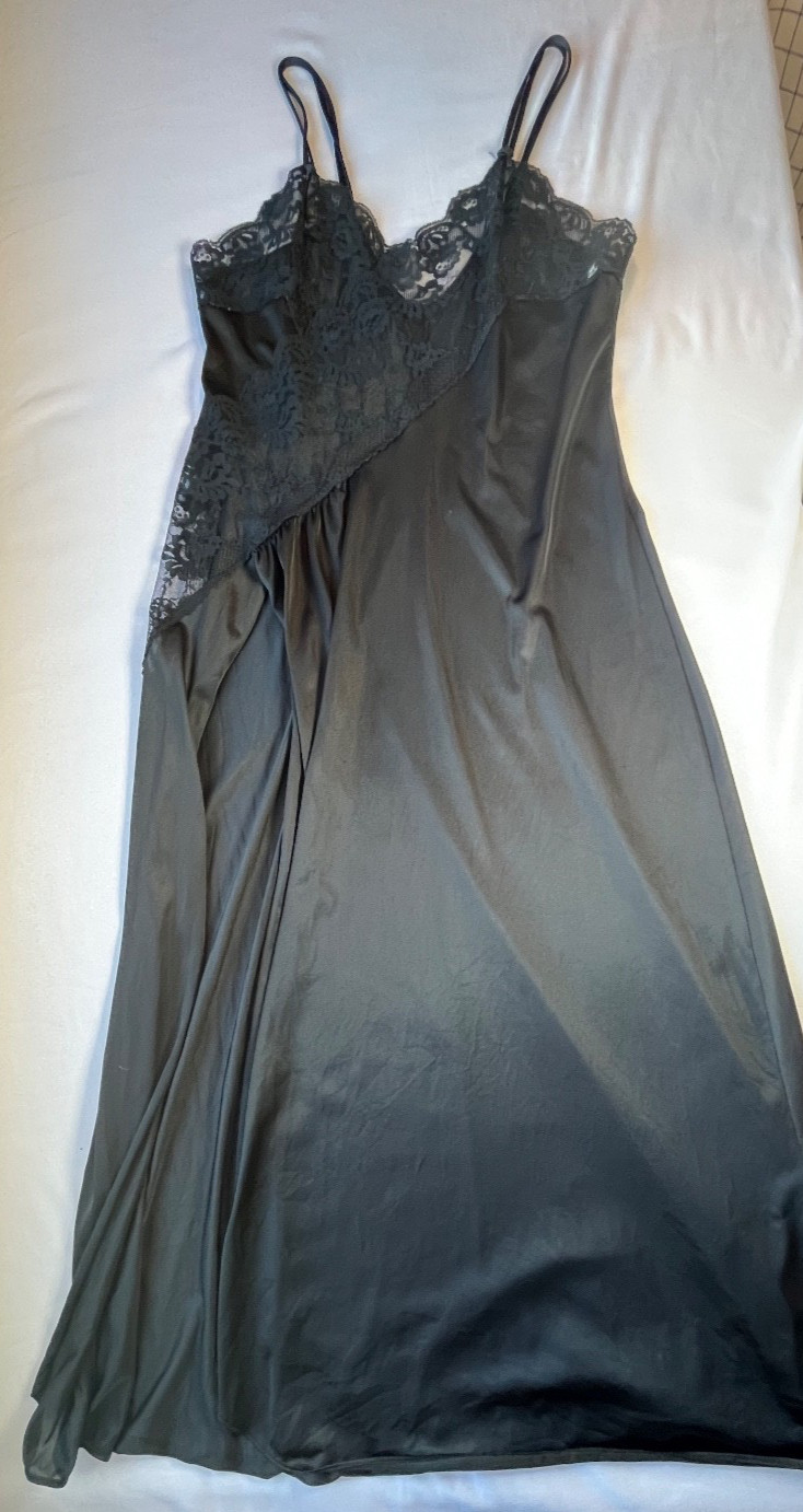как выглядит Vintage Fredericks of Hollywood 90s Women Size M Black Long Lingerie Slip Dress фото
