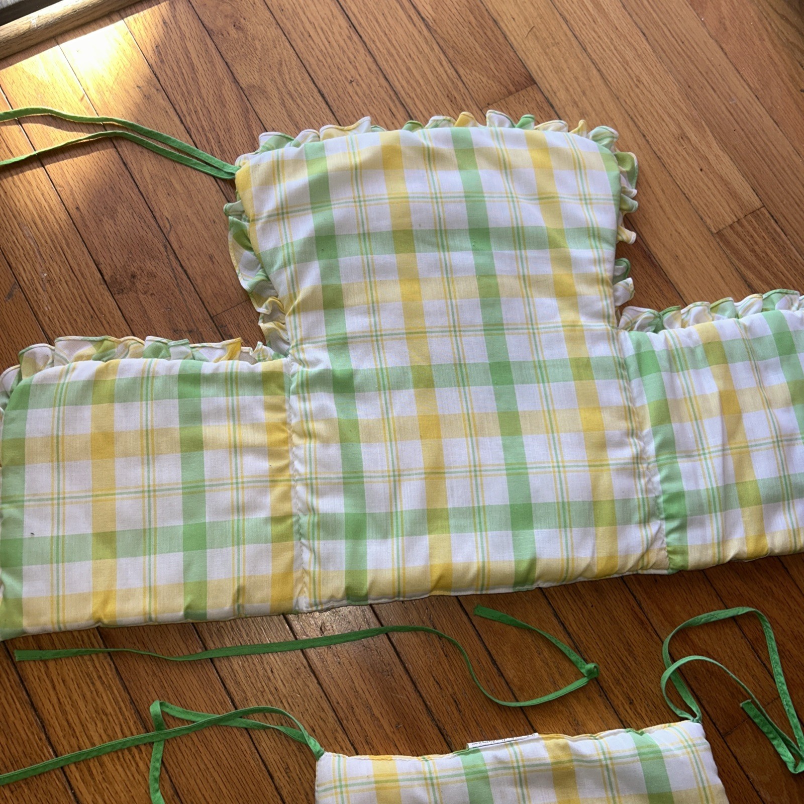 как выглядит Vtg 60s Highchair Pad Seat Cushion Green Yellow Gingham Puppy Dog Floppy Ear фото
