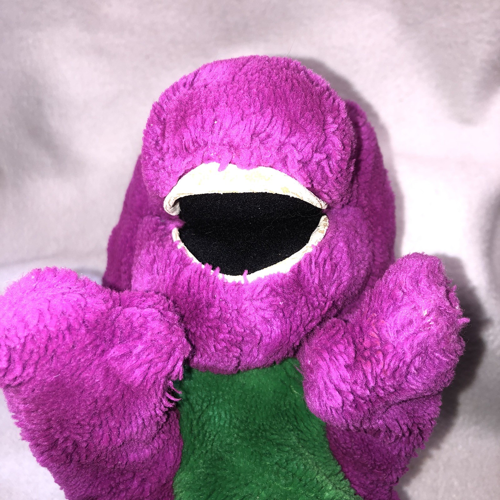 как выглядит VTG Baby Bop Barney Hand Puppets Stuffed Animals Plush Green Purple Dinosaurs фото