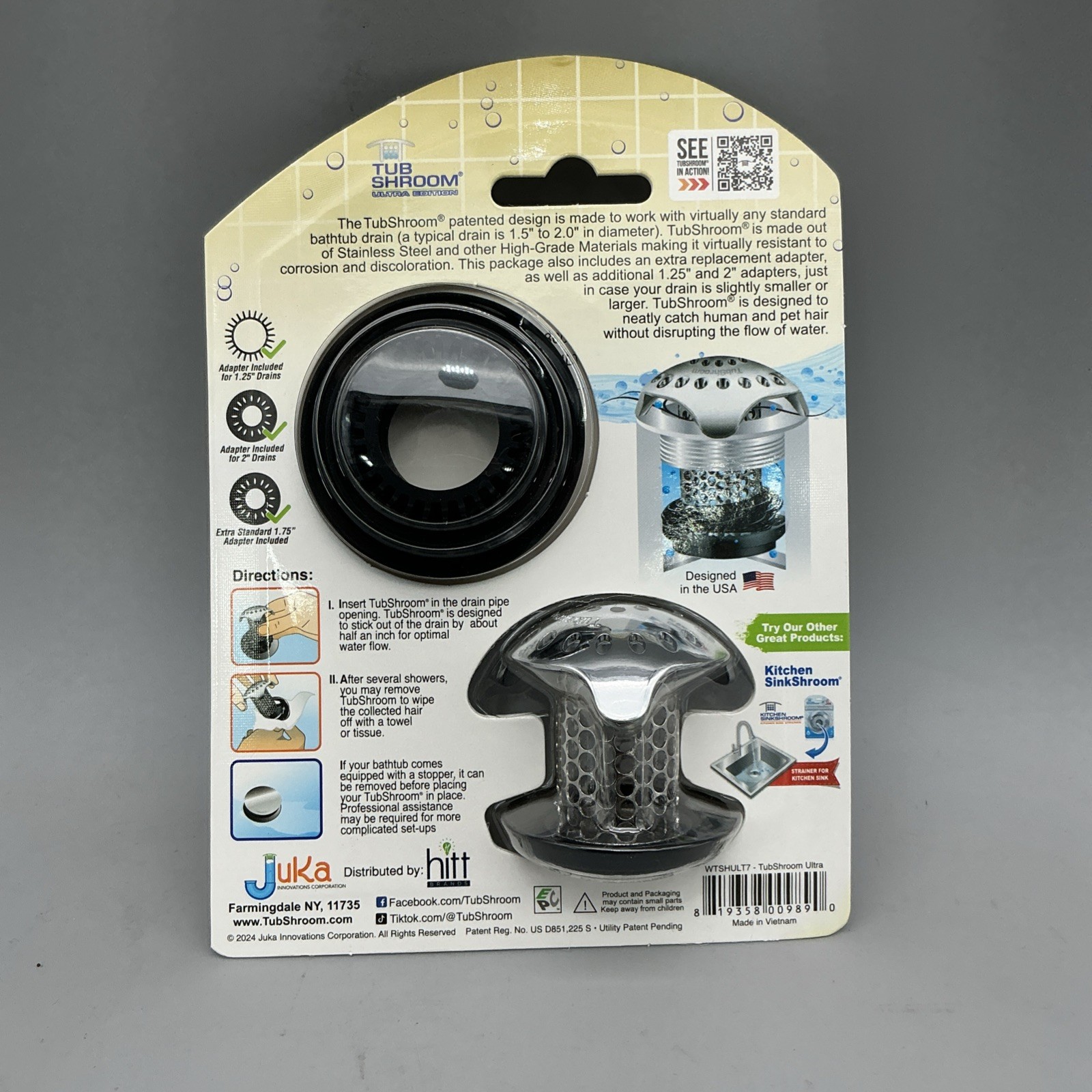 как выглядит TubShroom 1.25 in. - 2 in. Bathtub Drain Protector Hair Catcher Stainless Steel фото