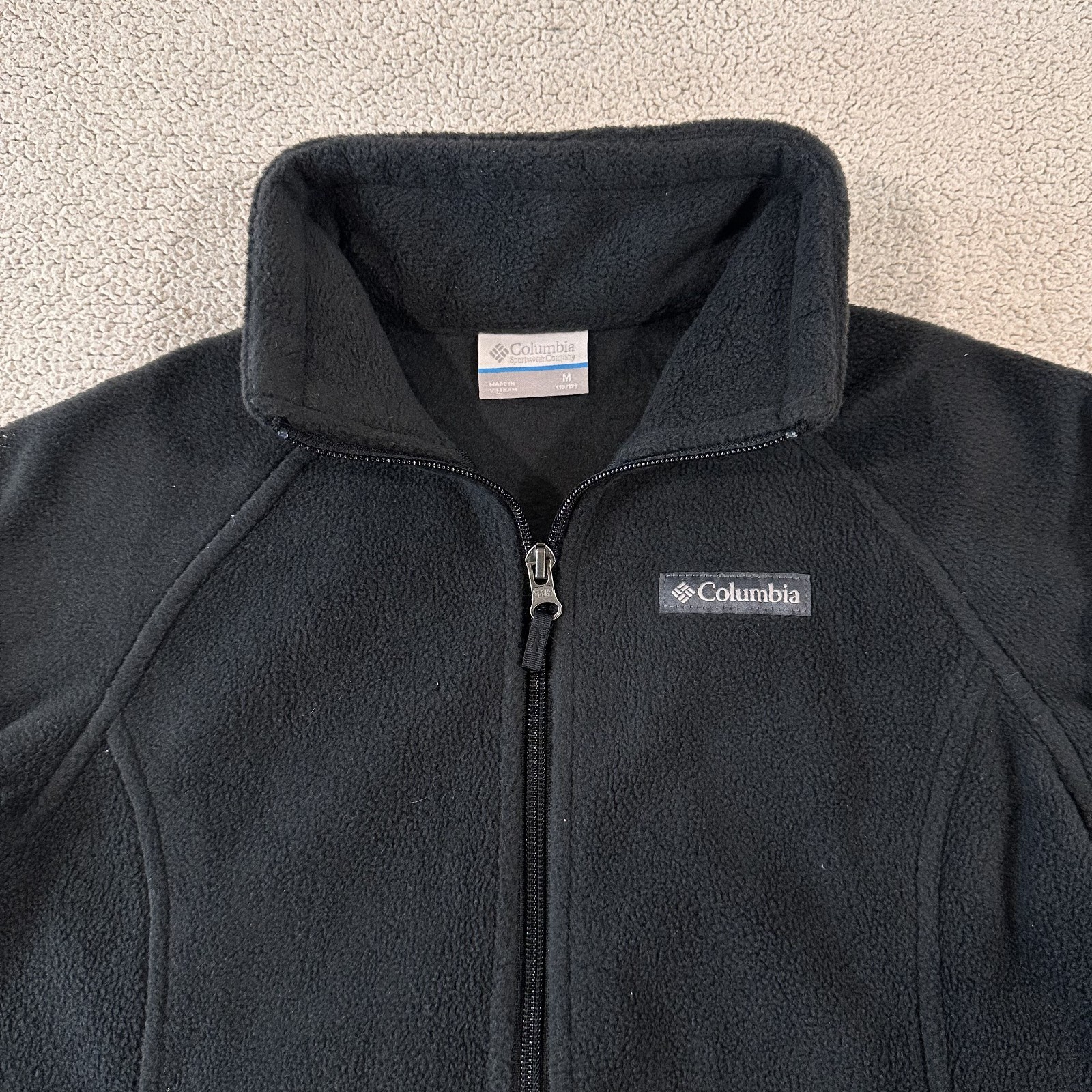 как выглядит Columbia Fleece Jacket Black Full Zip Pockets Youth Size Medium 10/12 фото