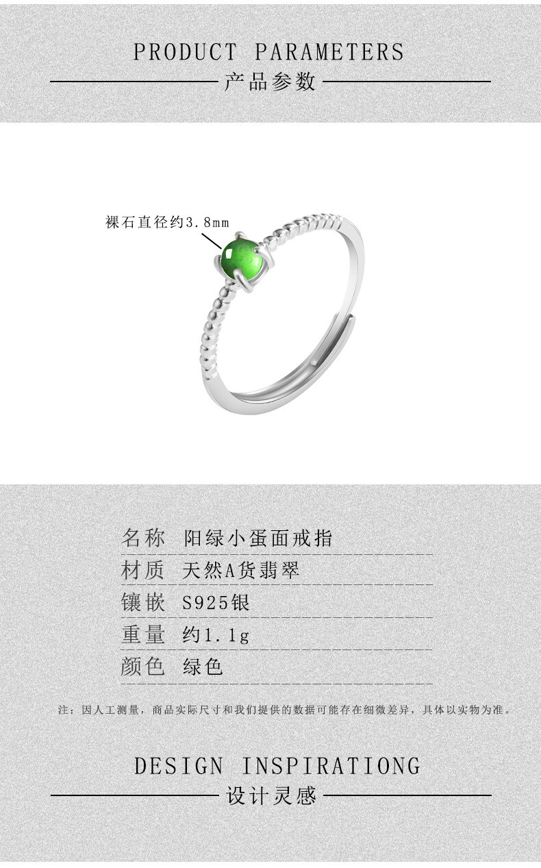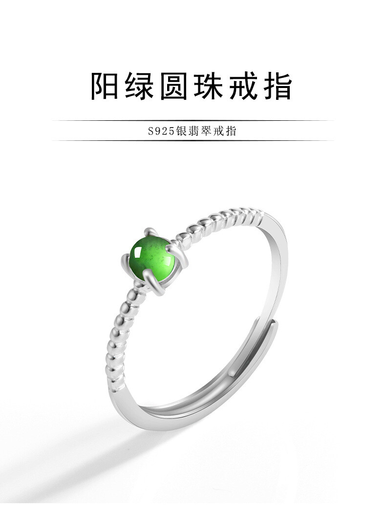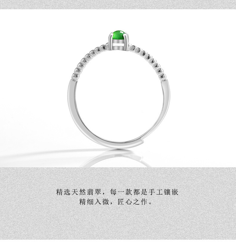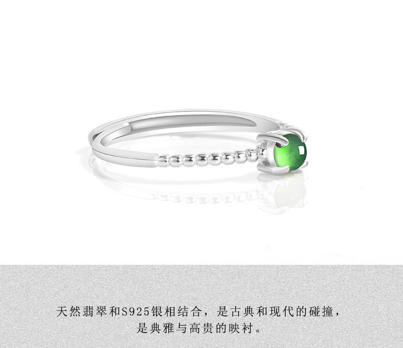 Certified S925 silver inlaid natural A-grade Burma jadeite Icy Green ring 3.8MM
