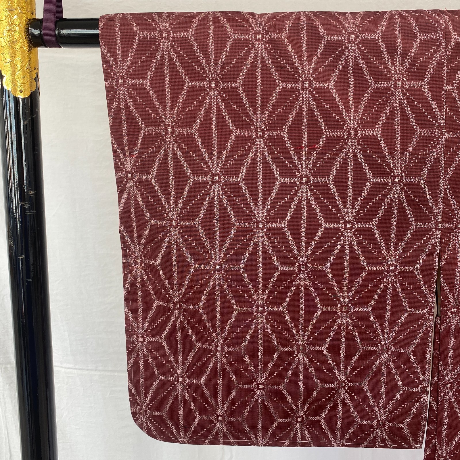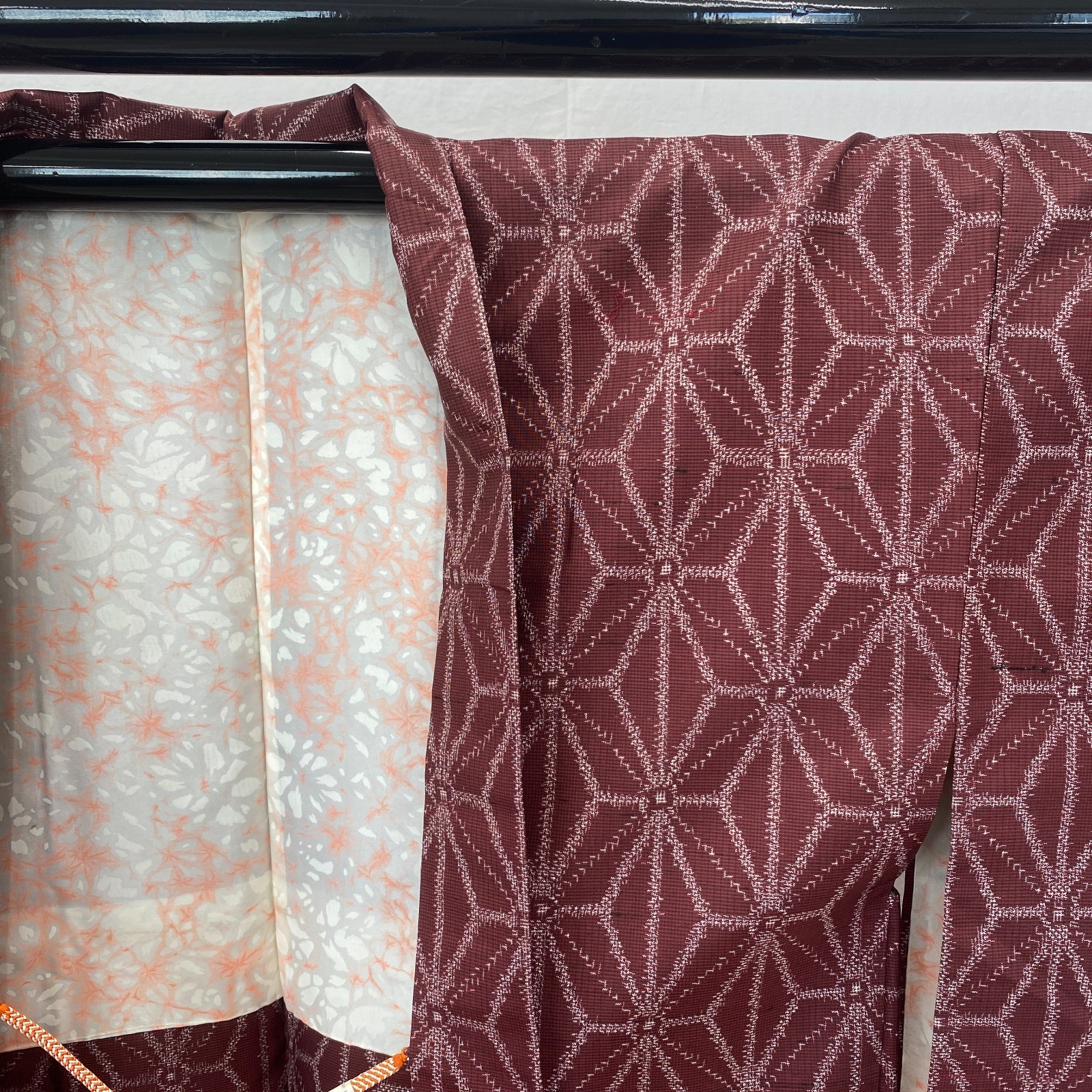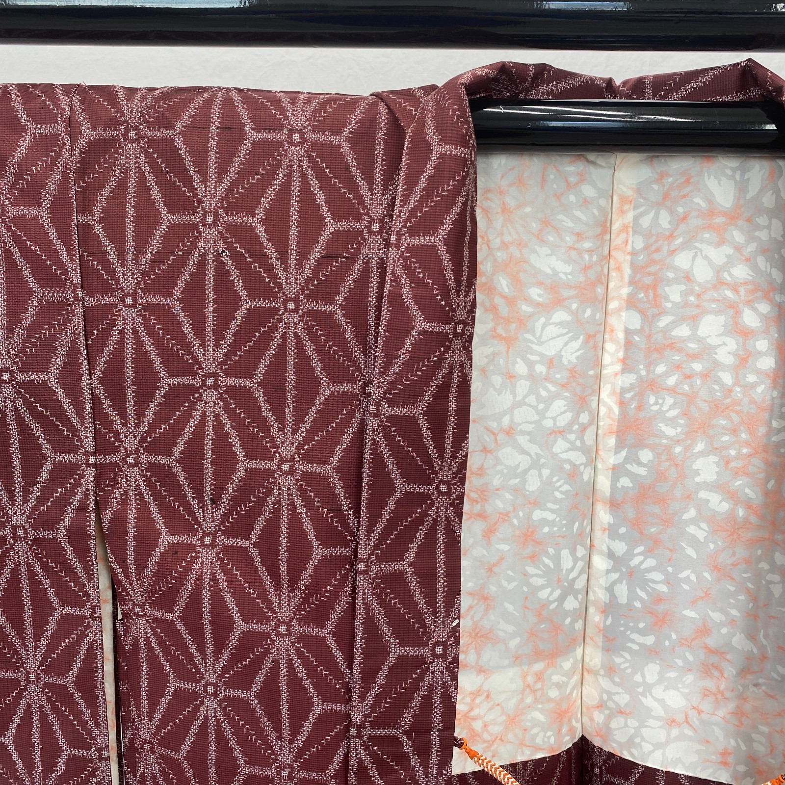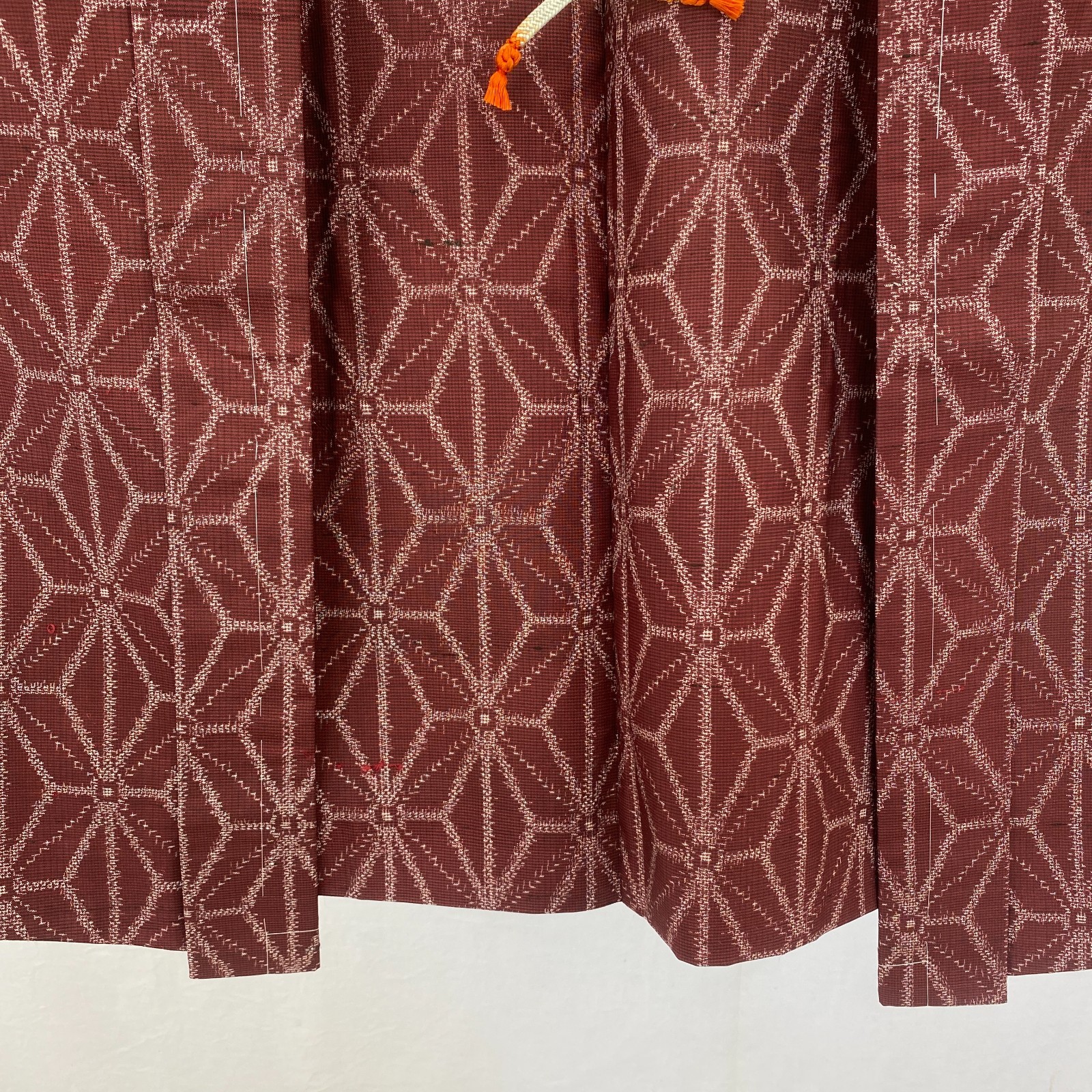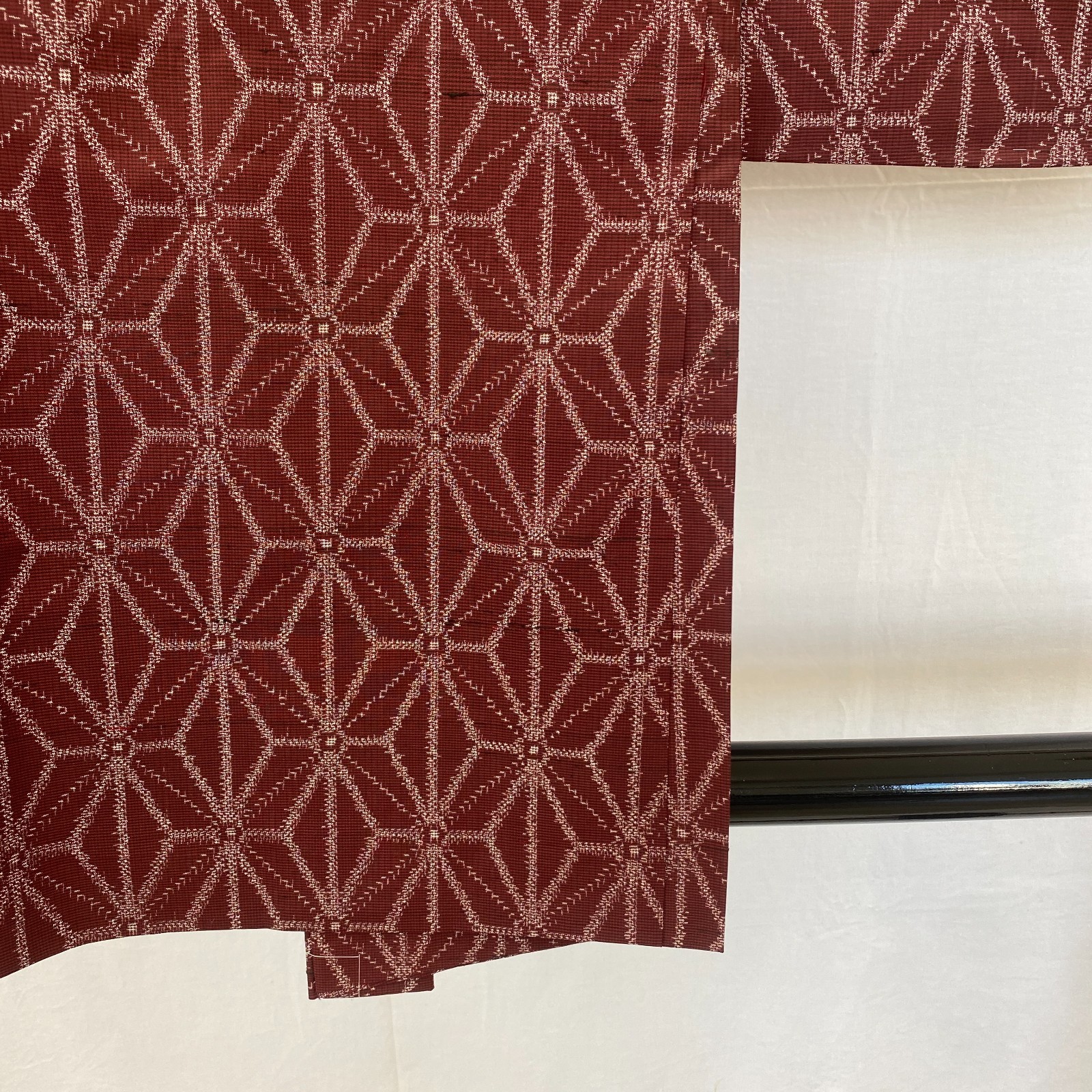 как выглядит Japanese Vintage Kimono Haori Jacket Silk Red Oshima Traditional Authentic 33 in фото