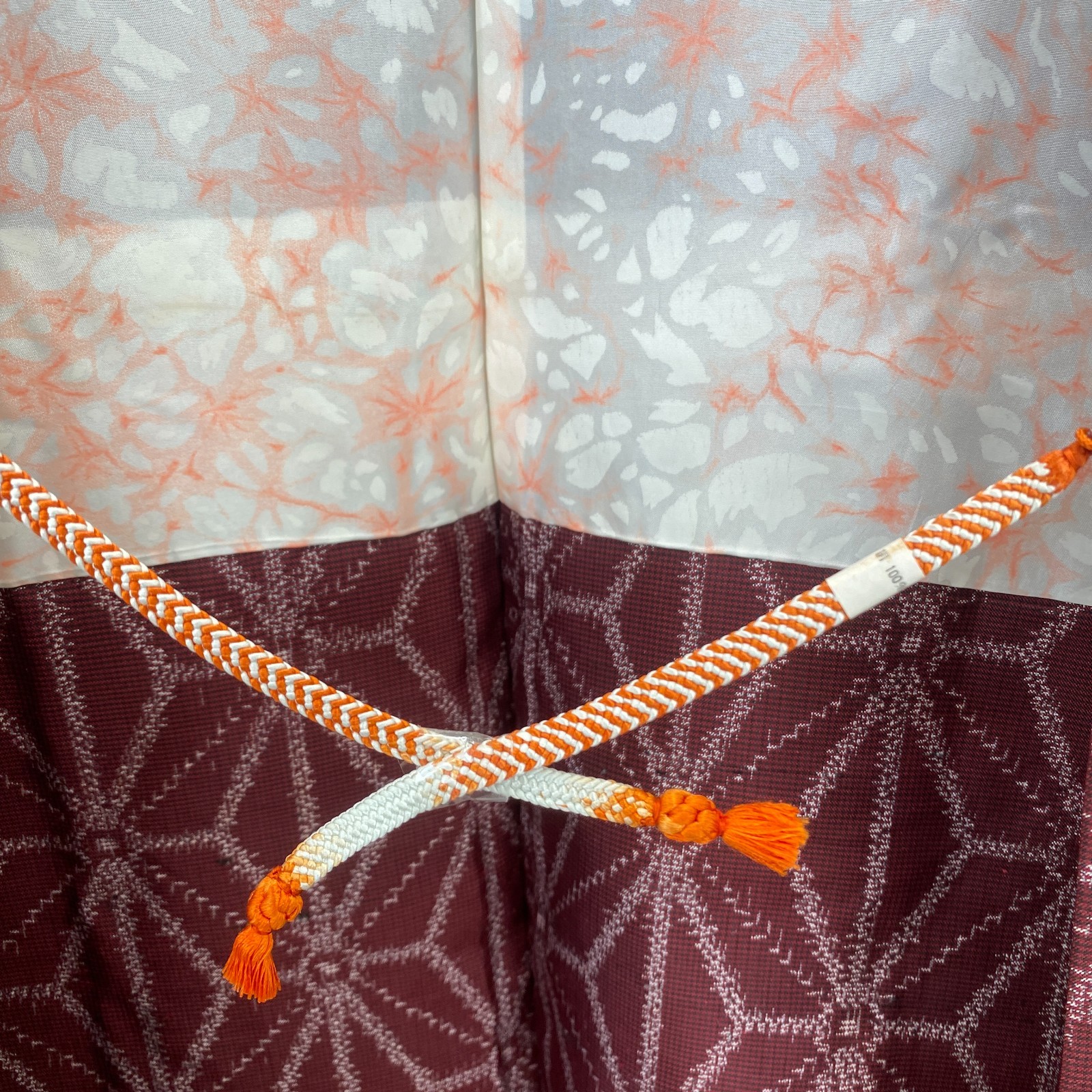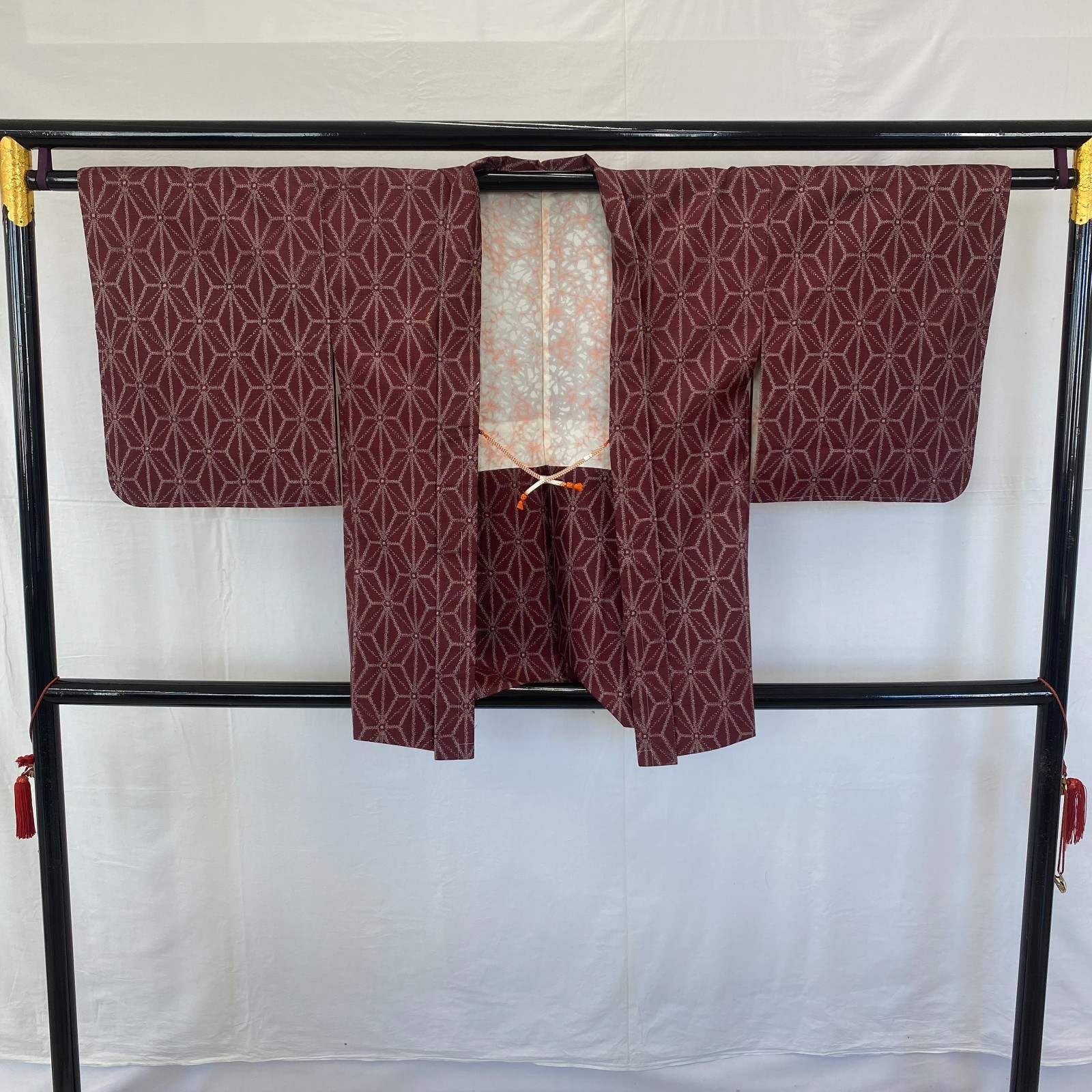 Japanese Vintage Kimono Haori Jacket Silk Red Oshima Traditional Authentic 33 in