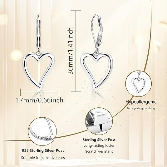 как выглядит Sterling Silver Heart Dangle Earrings for Women Trendy Openwork Silver Heart ... фото