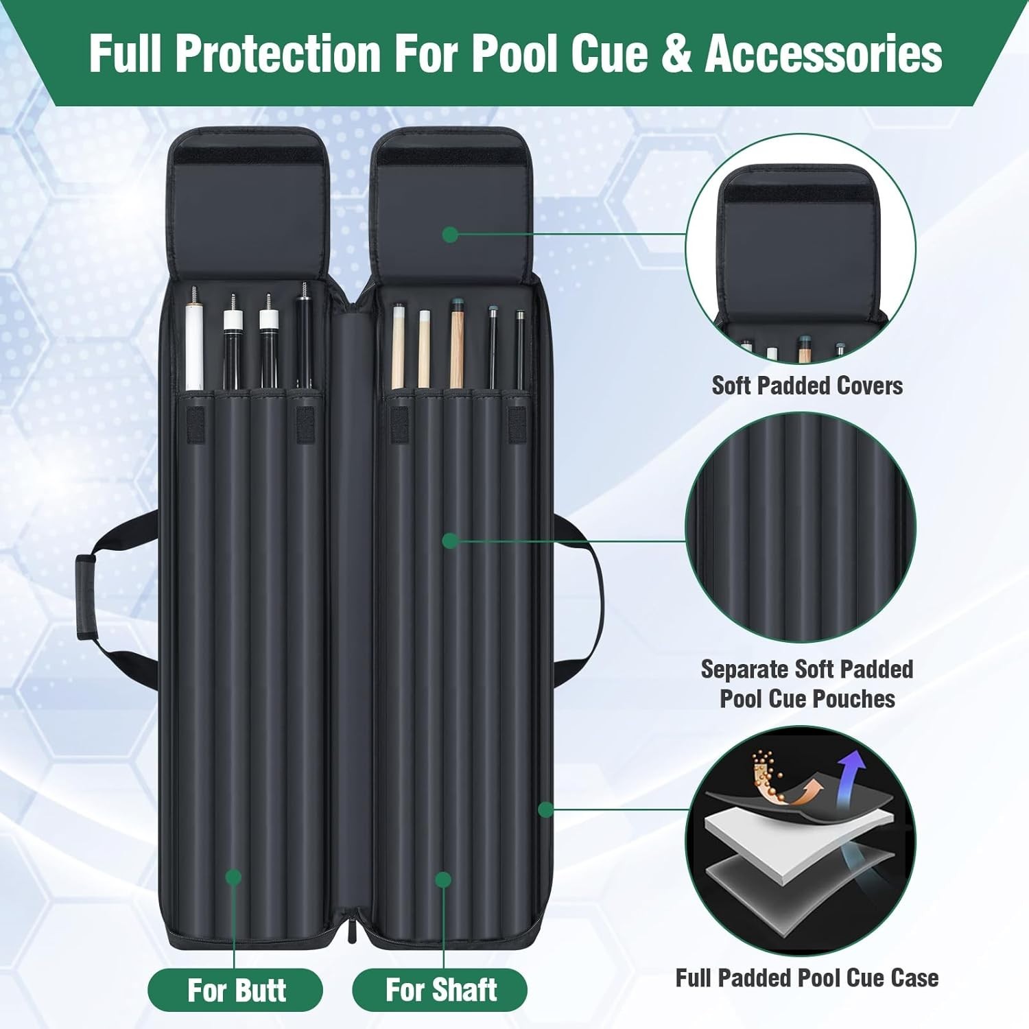 как выглядит Pool Cue Case 4x5, Pool Cue Carrying Case Soft Padded Billiard Stick Bag with... фото